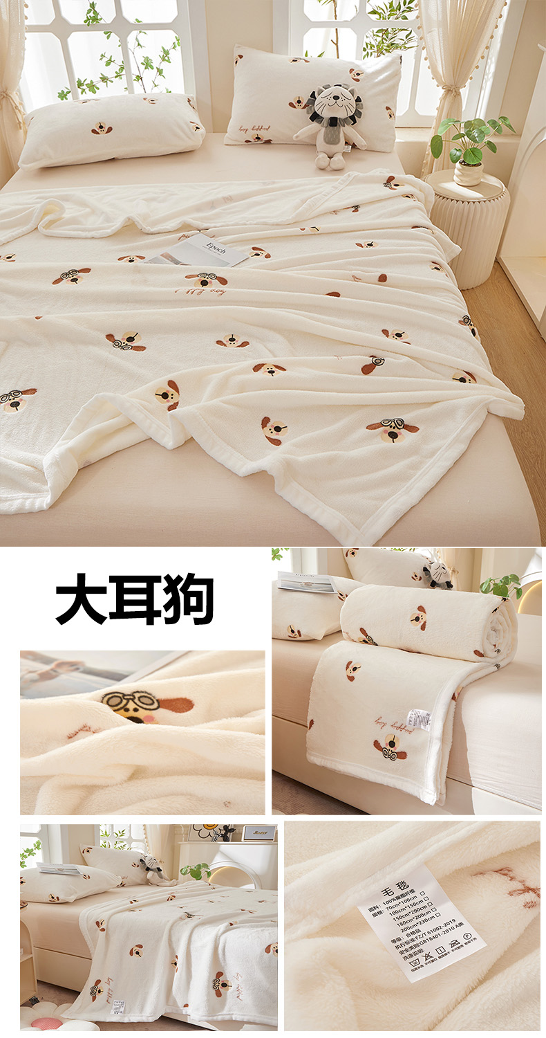 (总)楼兰公主毛毯专供 2025新款高克重230g牛奶绒数码印花毛巾绣卡通四件套,布拉拉,腊肠狗,奶油熊,淘气狗,小粉猫,小男孩,小苹果,小企鹅