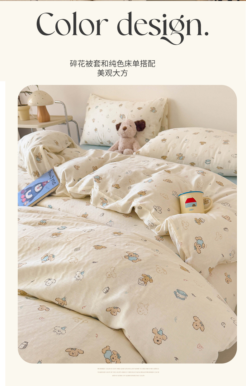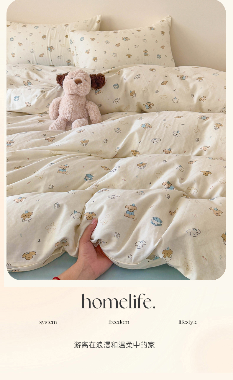 当前位置: 91家纺网 > 商品网购 > 床品套件 > 四件套 > 全棉普通四件套 > 麦伦家居 2025新款A类全棉纯棉有氧双层纱人字纹提花四件套 卷毛狗