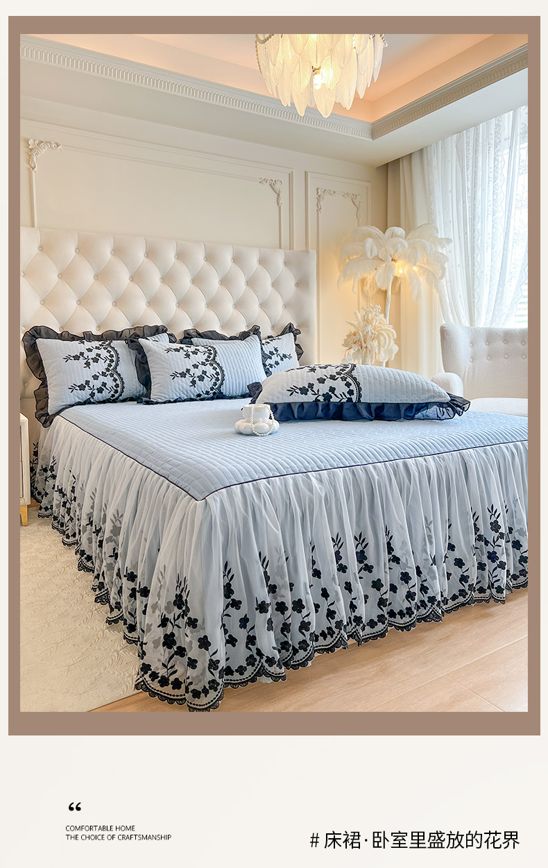 • 91家纺网 家纺一手货源 找家纺 恋尚 2025春夏新款香云纱床裙单床裙床裙单件-赫本妮娅 赫本妮娅-天空蓝