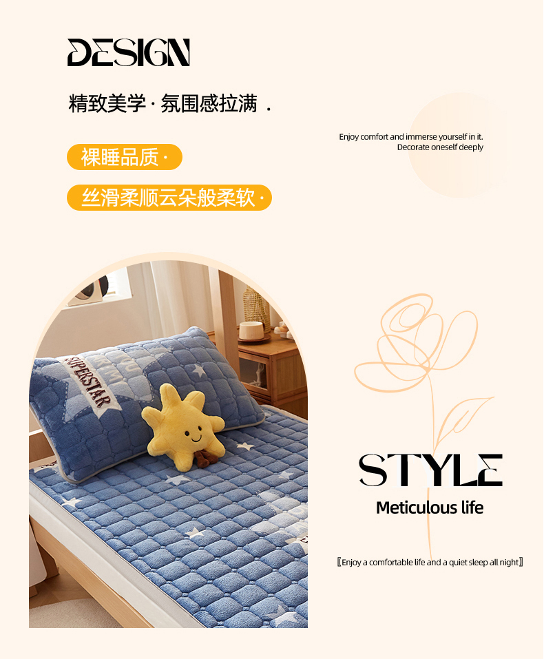 • 91家纺网 家纺一手货源 找家纺 (总)奇丝雅 2025新款A类牛奶绒泡泡绒床褥床垫床盖兔毛绒家用学生宿舍上下铺寝室褥子软垫床护垫夹棉(大床)场景二,星星猫咪,月亮湾,趴趴狗,繁星,爱心咖,樱桃猫咪,幻影灰,暖绒蓝,清新绿,柔和蓝