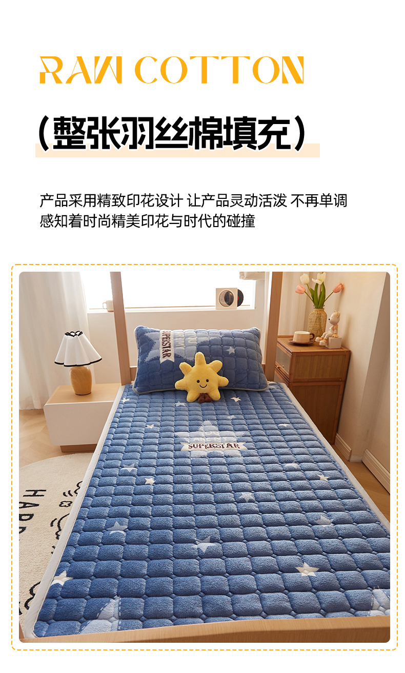 • 91家纺网 家纺一手货源 找家纺 奇丝雅 2025新款A类牛奶绒床褥床垫家用学生宿舍上下铺寝室软垫床护垫夹棉褥子-学生床垫 幸运星