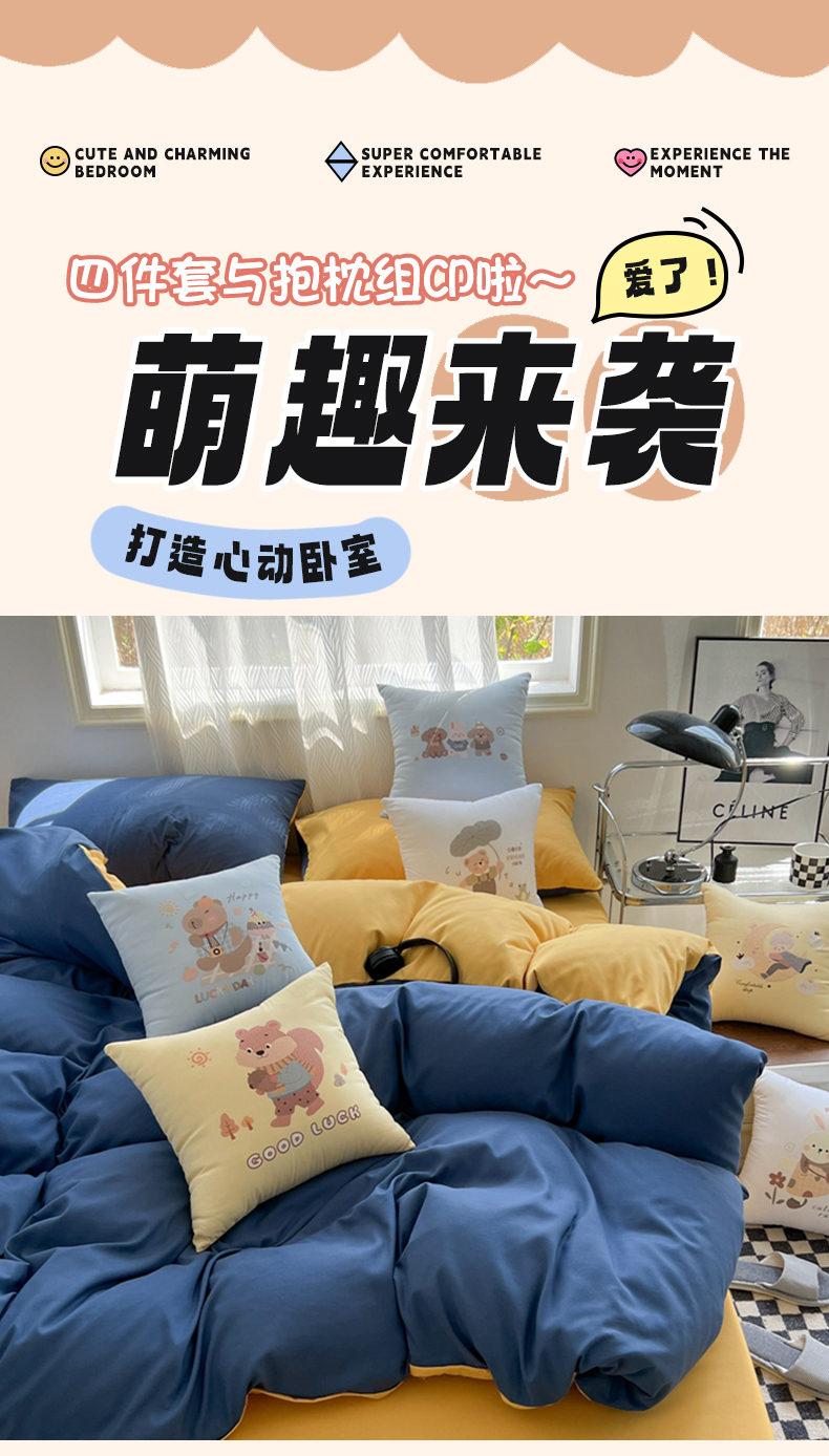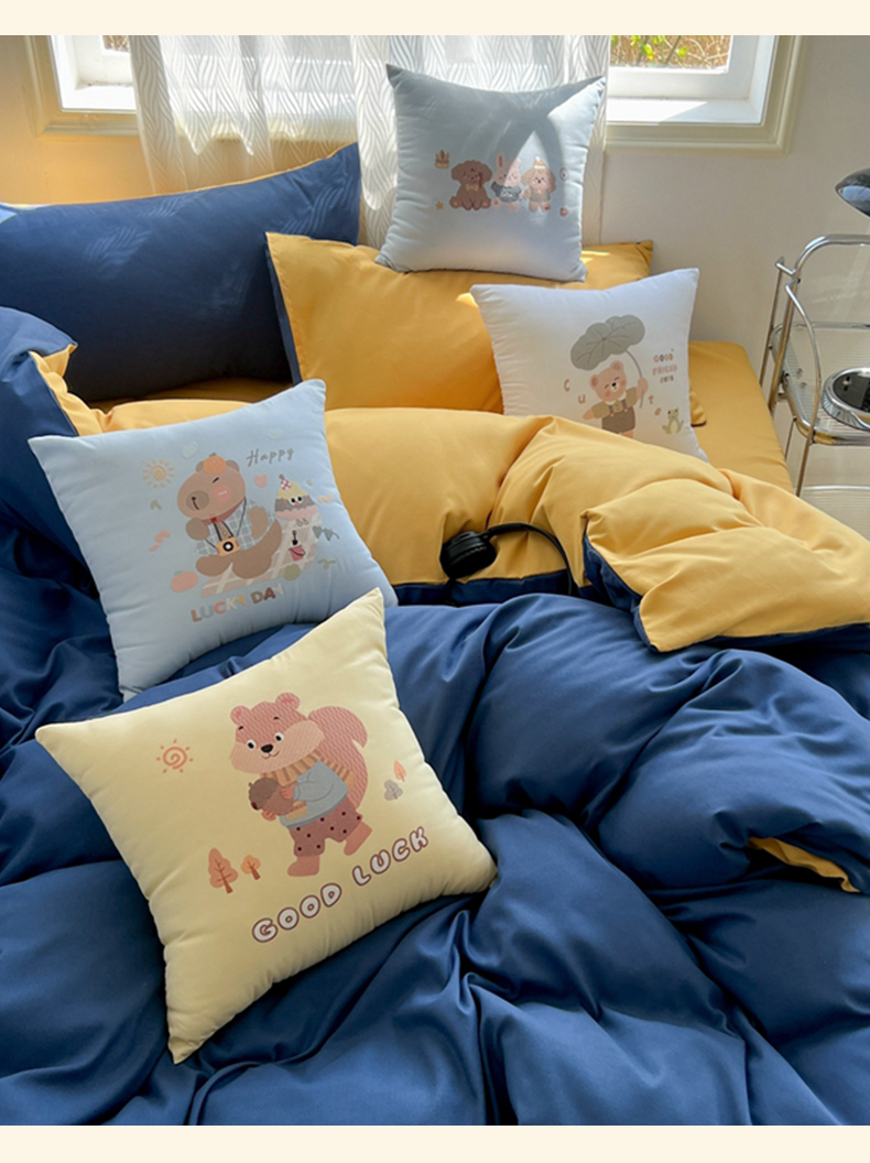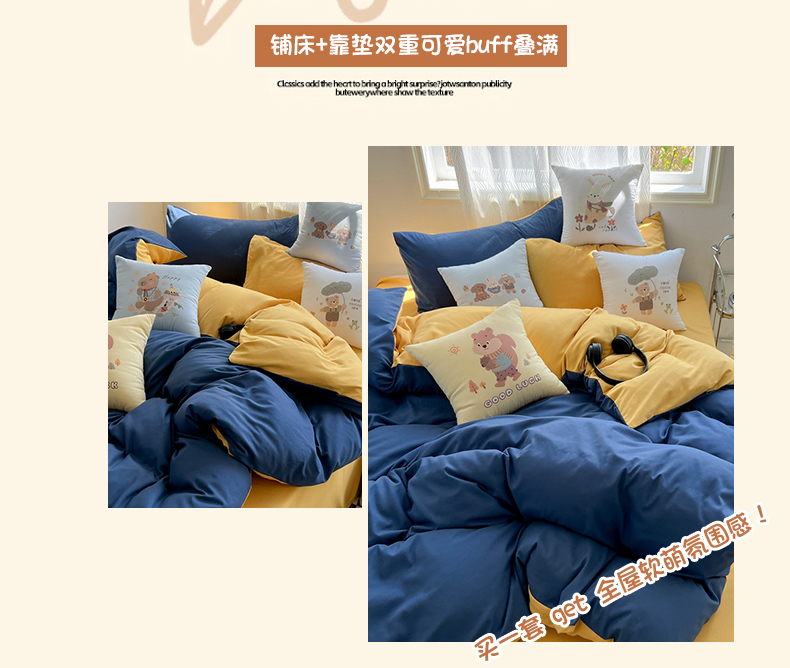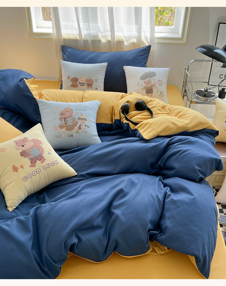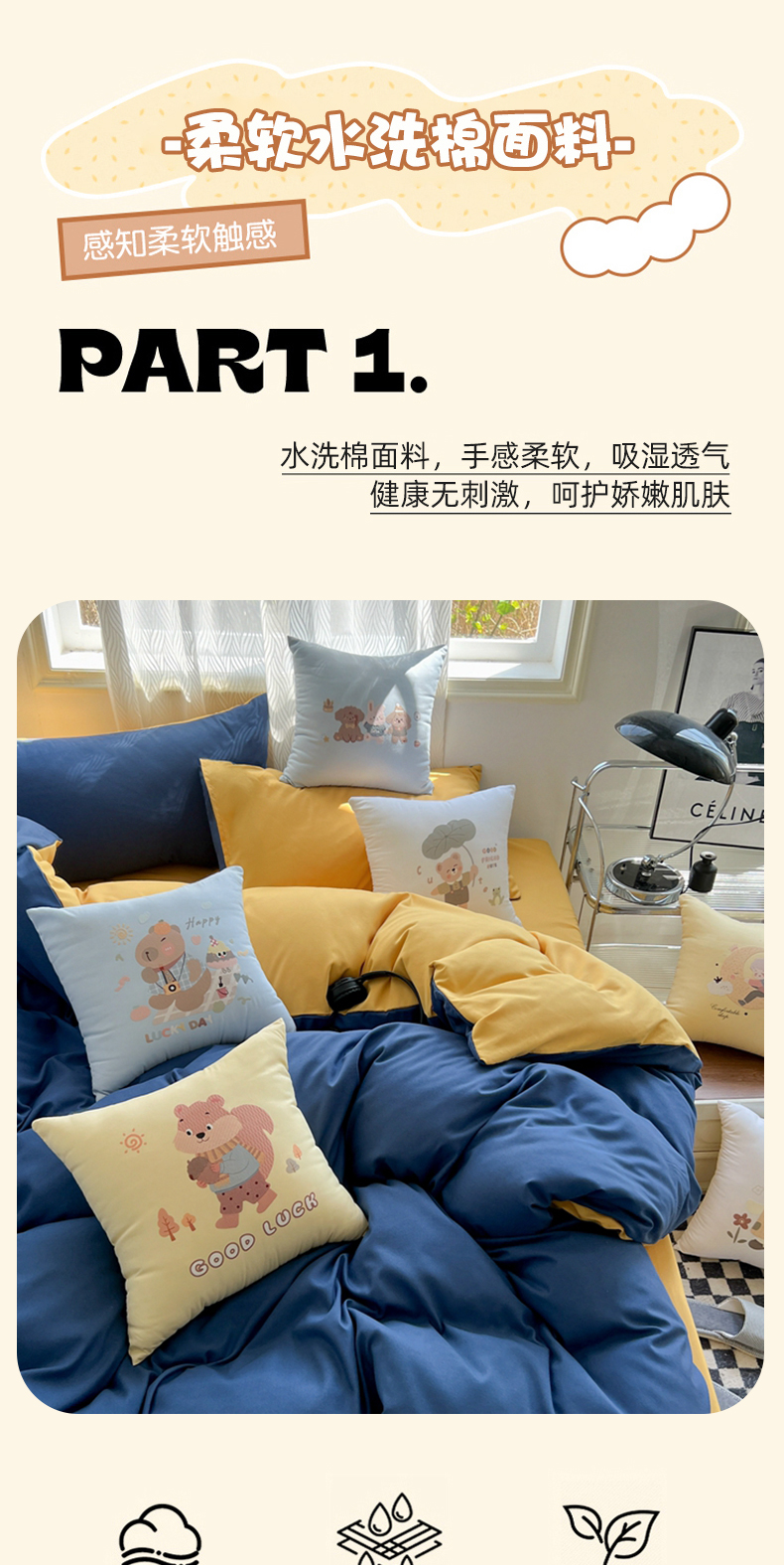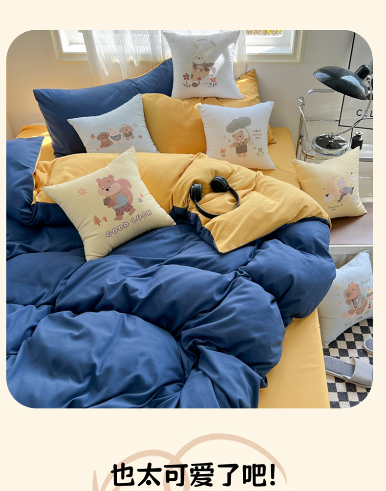 商品名称:(总)2025新款双拼水洗棉四件套搭配抱枕套装多巴胺风可爱床单被套抱枕五件套床品套件