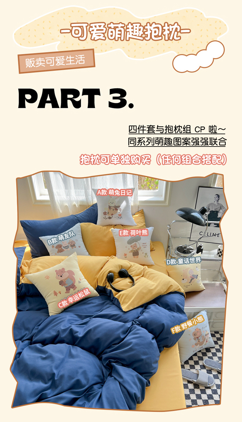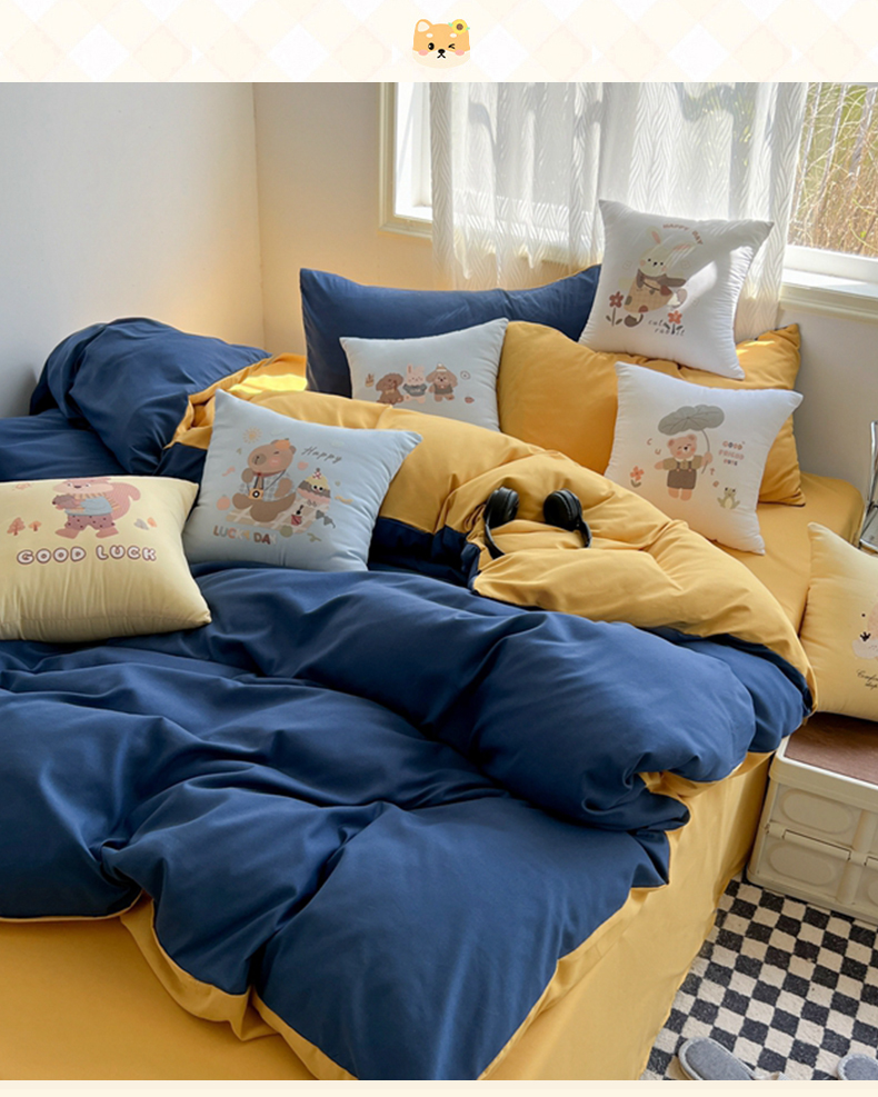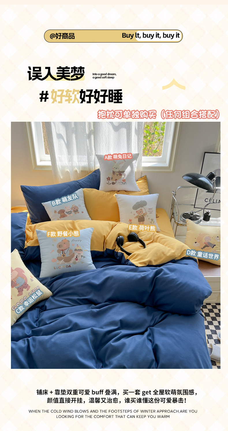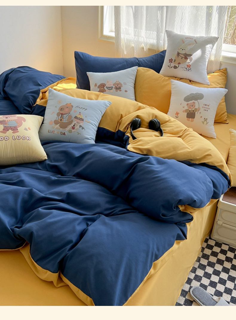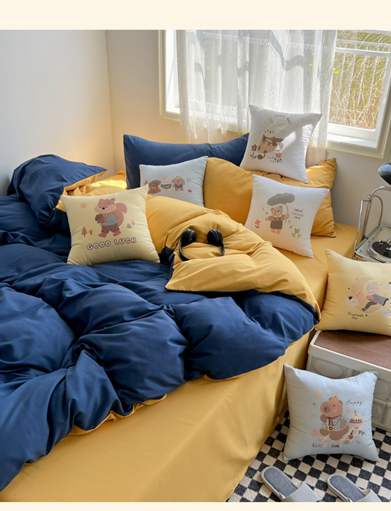 商品名称:(总)2025新款双拼水洗棉四件套搭配抱枕套装多巴胺风可爱床单被套抱枕五件套床品套件