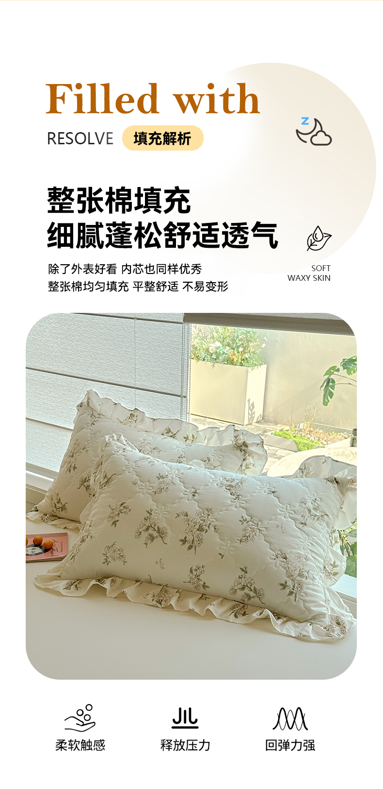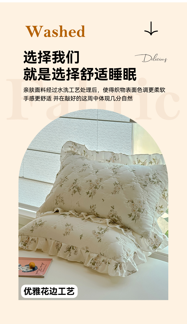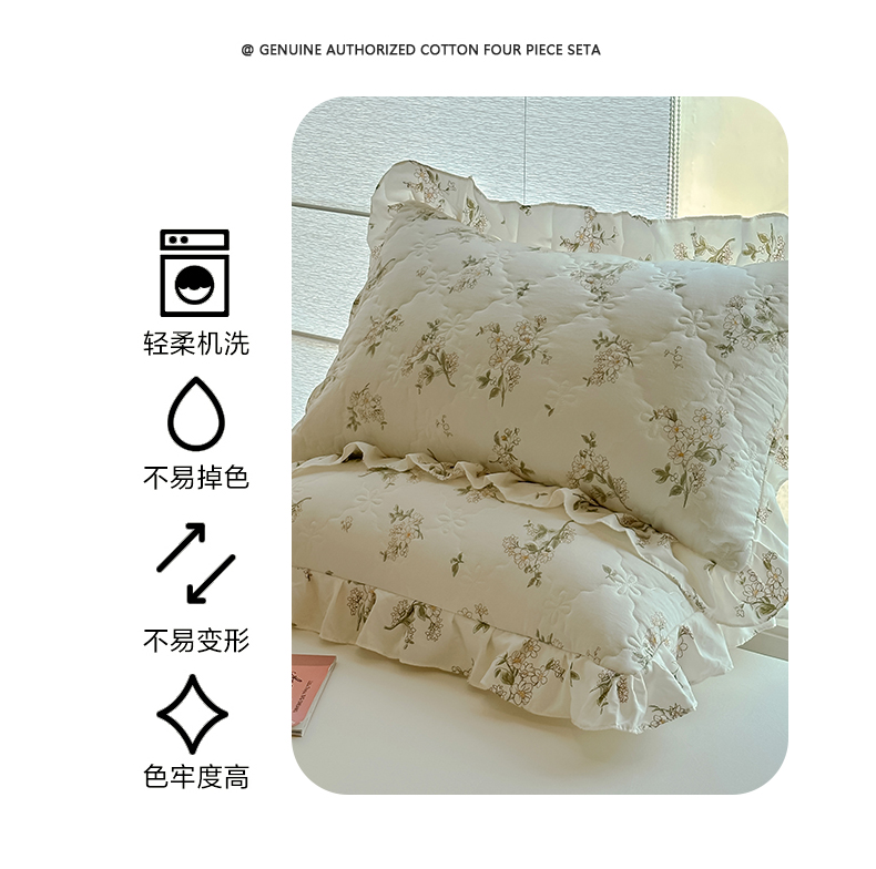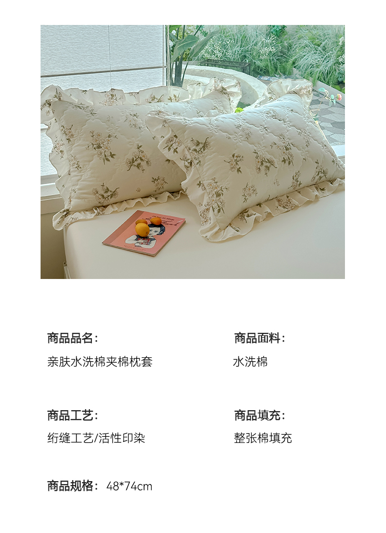 商品名称:忘忧草 2025新款亲肤水洗棉花边单枕套 枕套单件 茶艺师