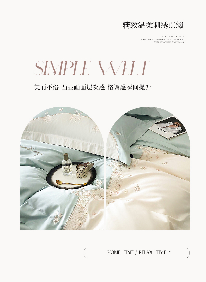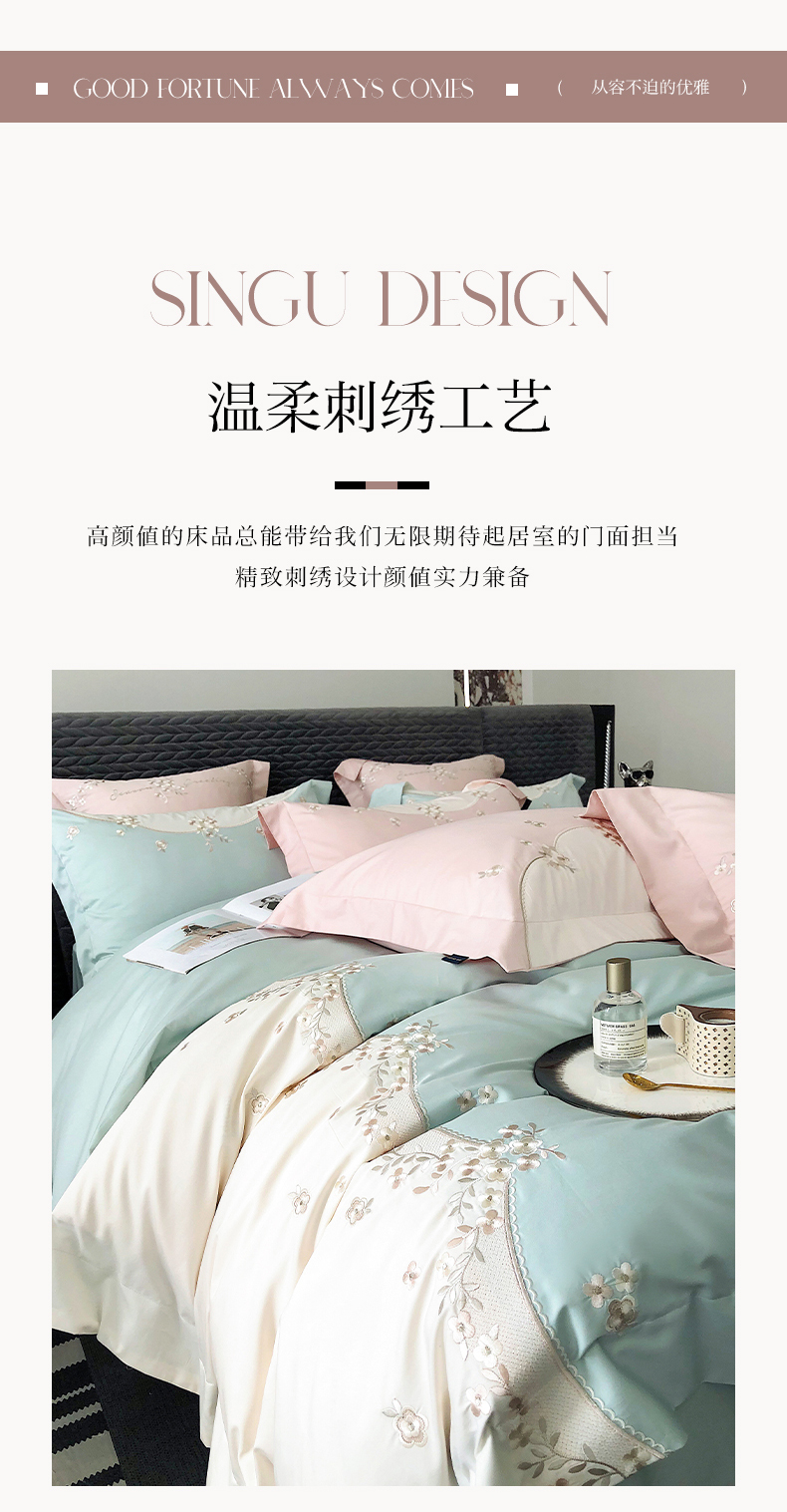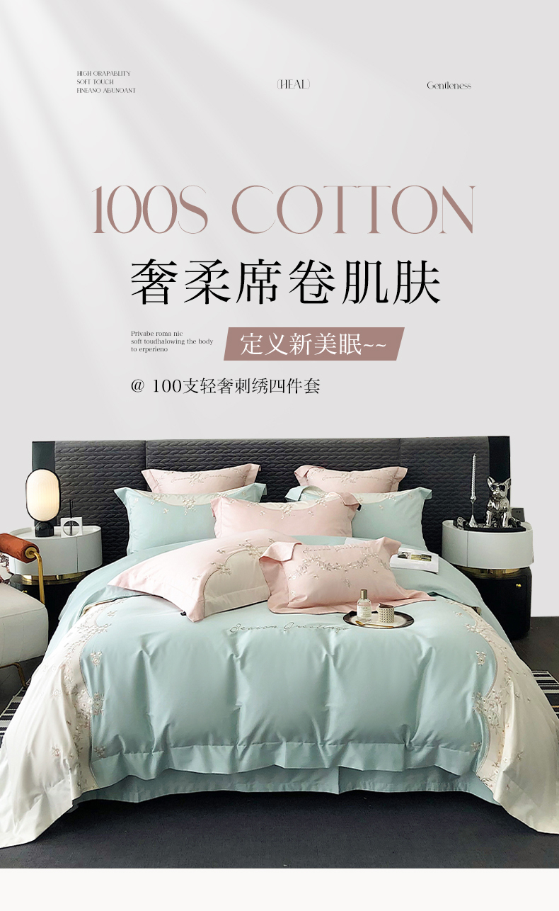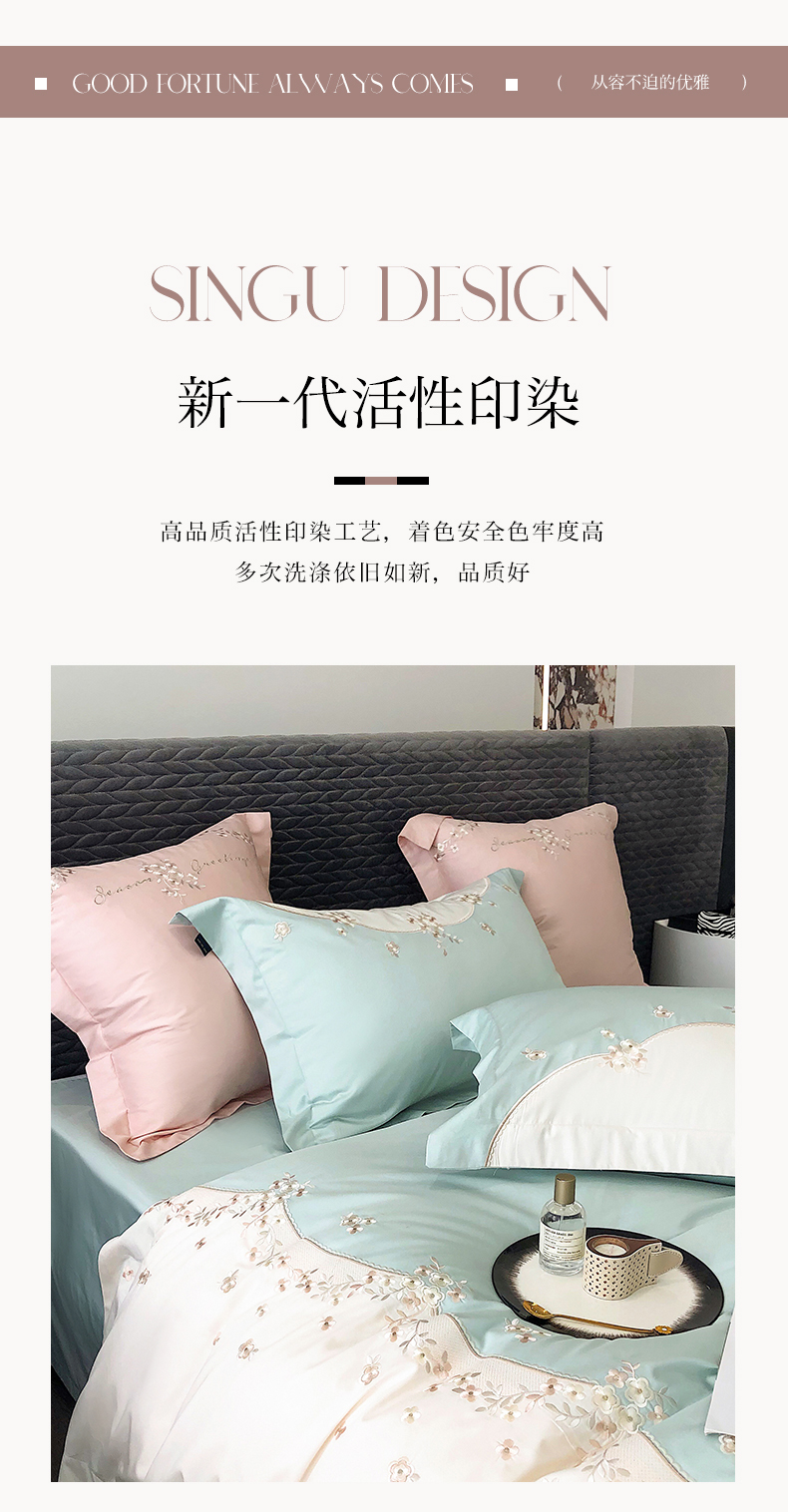 (总)佳汐蓝家纺 2026新款新疆长绒棉全棉纯棉轻奢五线刺绣四件套,初雪白,稻谷米,冷釉灰,汐雾蓝,薰衣紫,釉粉,朱砂红