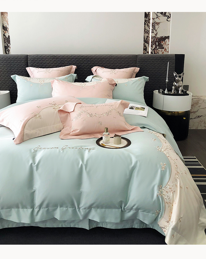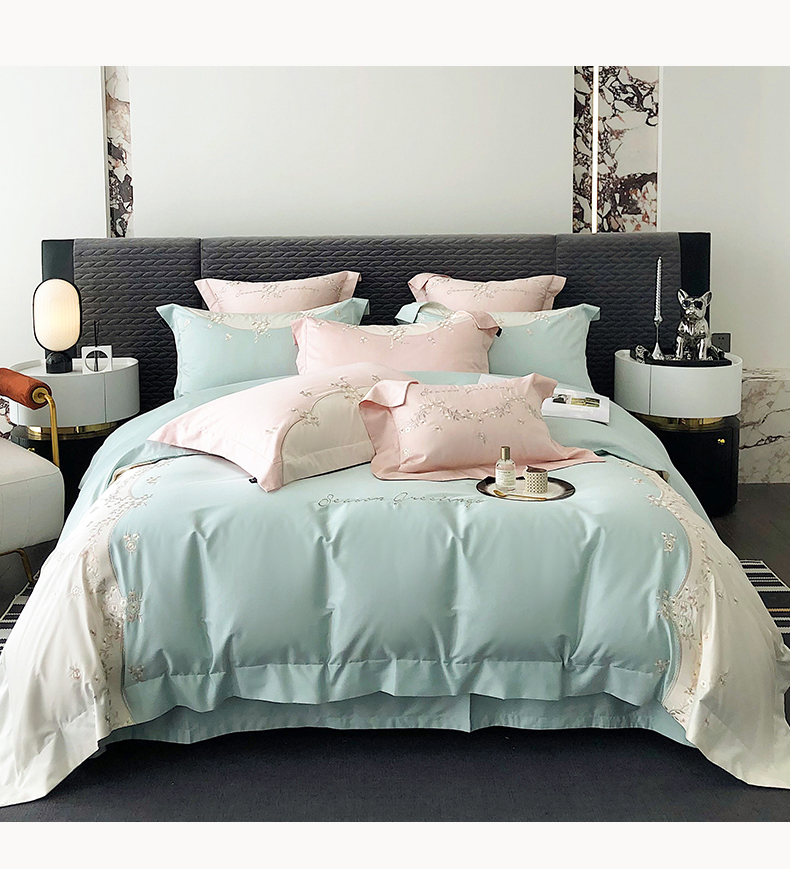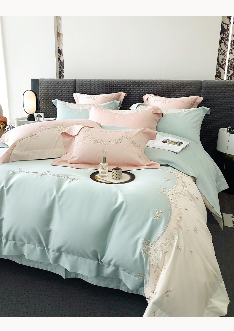 (总)佳汐蓝家纺 2025春夏新款天丝棉蝶舞繁花绣花天丝四件套,蝶舞繁花·粉,蝶舞繁花·蓝