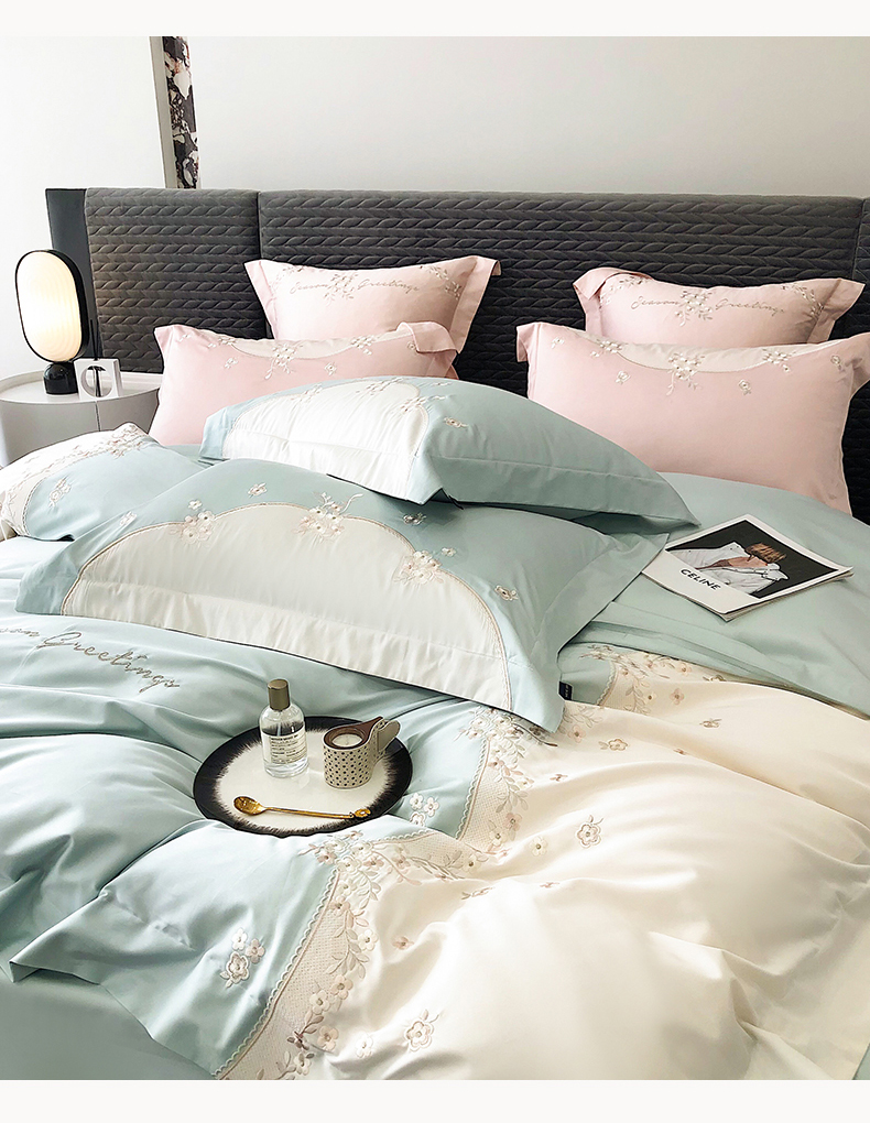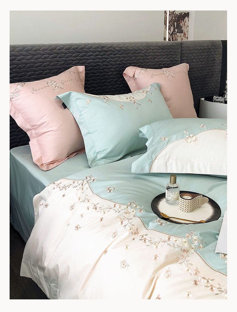 (总)佳汐蓝 2025春夏新品双层皱皱纱刺绣+荷叶边四件套--花与浔,奶白,天蓝