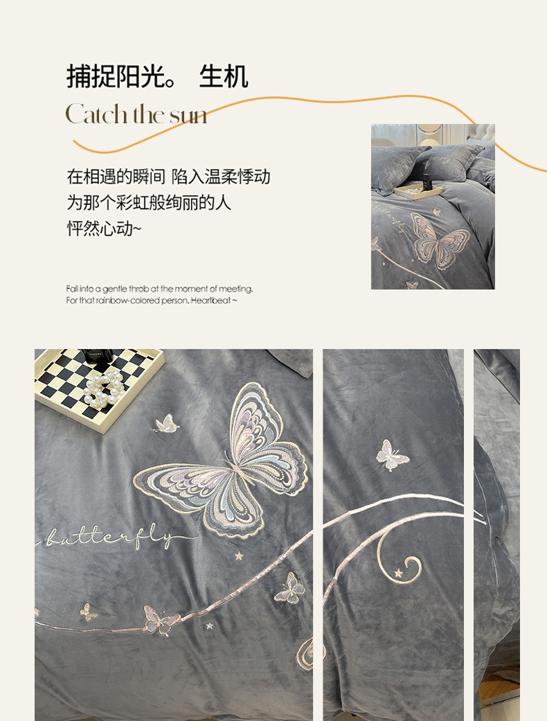 (总)艺玲家纺 2025新款婴儿绒高端绣花四件套,蝶舞-果绿,蝶舞-灰色,蝶舞-玉色,心动日记-果绿,心动日记-灰色,心动日记-玉色