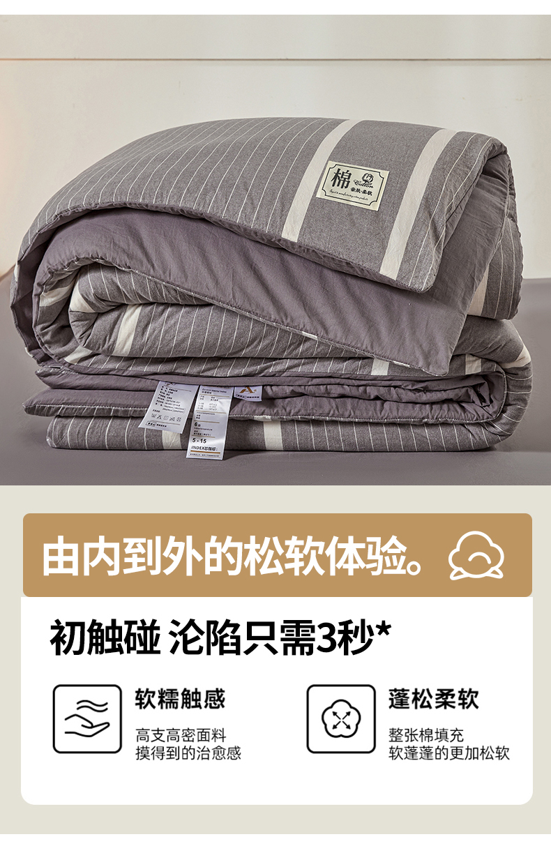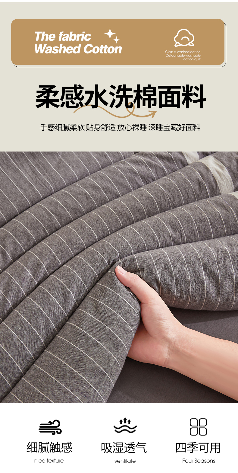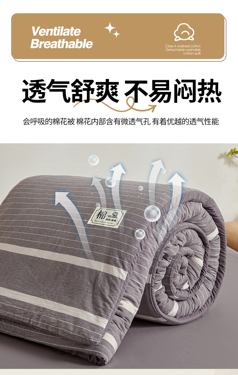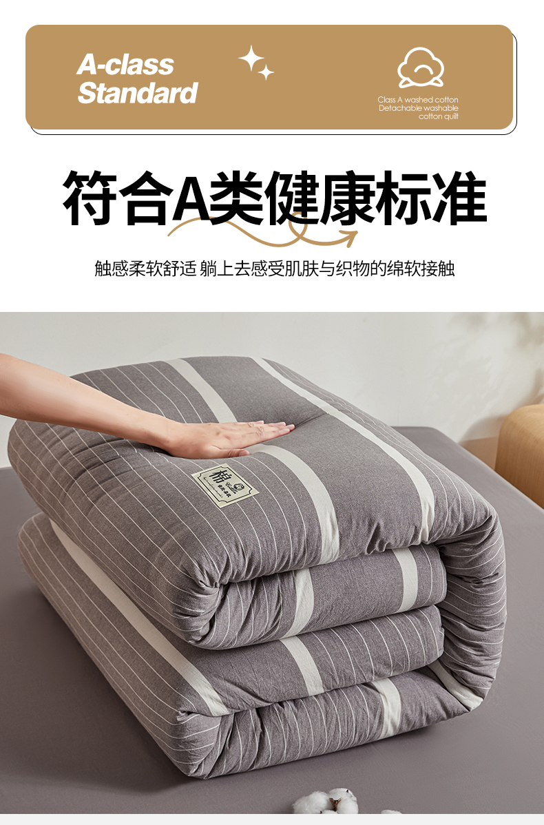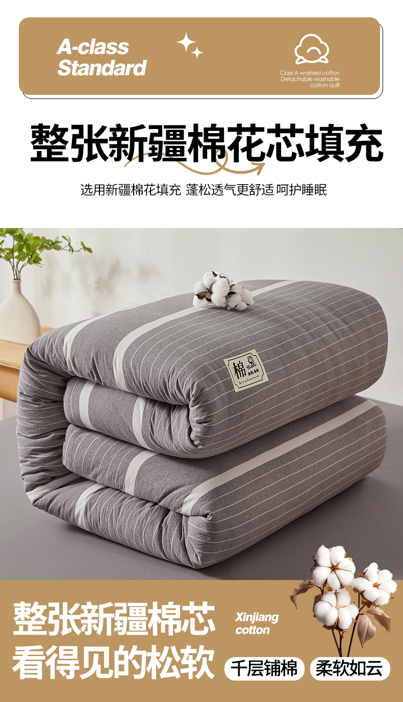 • 91家纺网 家纺一手货源 找家纺 晓时候 2025新款A类水洗棉可拆洗新疆棉花被冬被春秋被夏被四季被子被芯 灰细条
