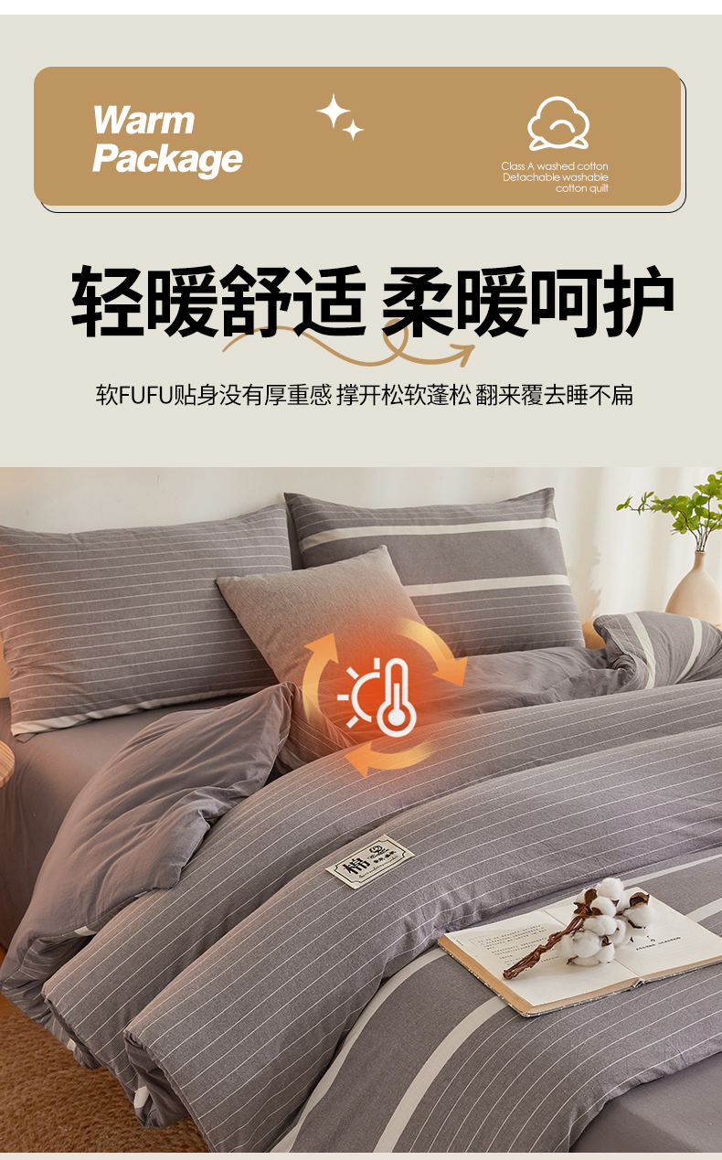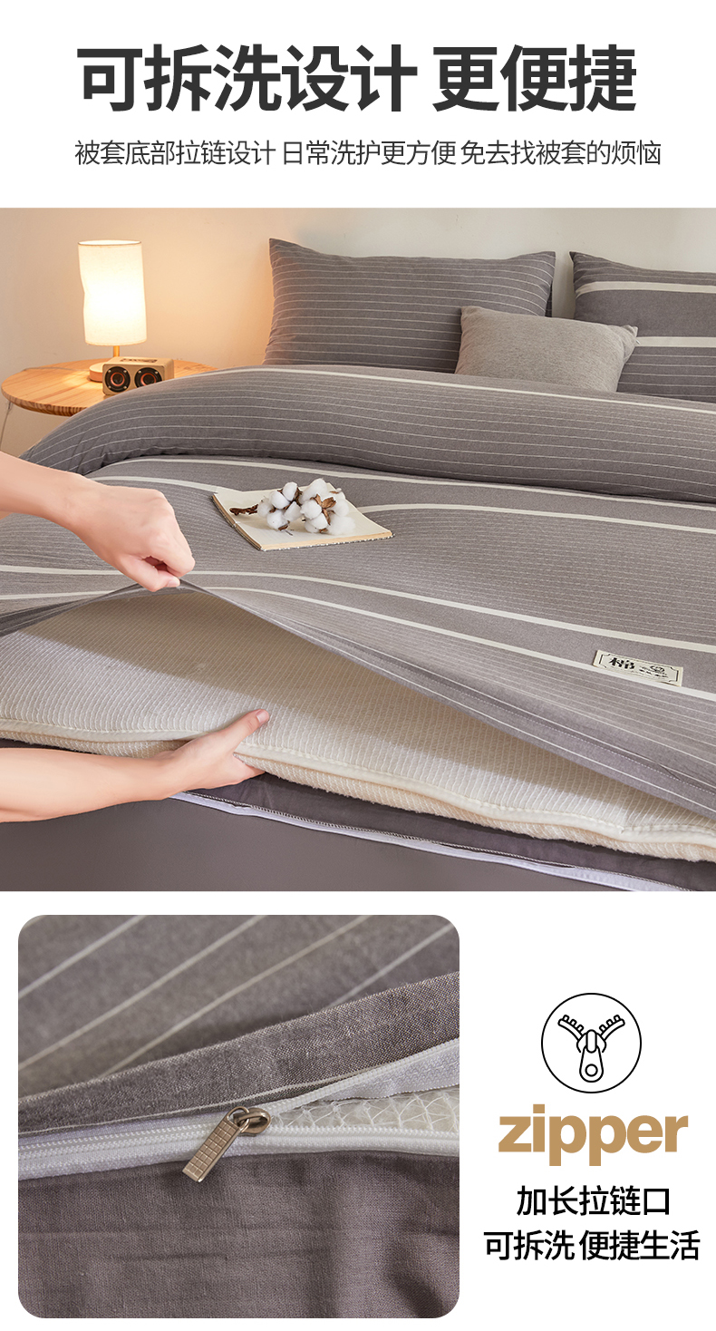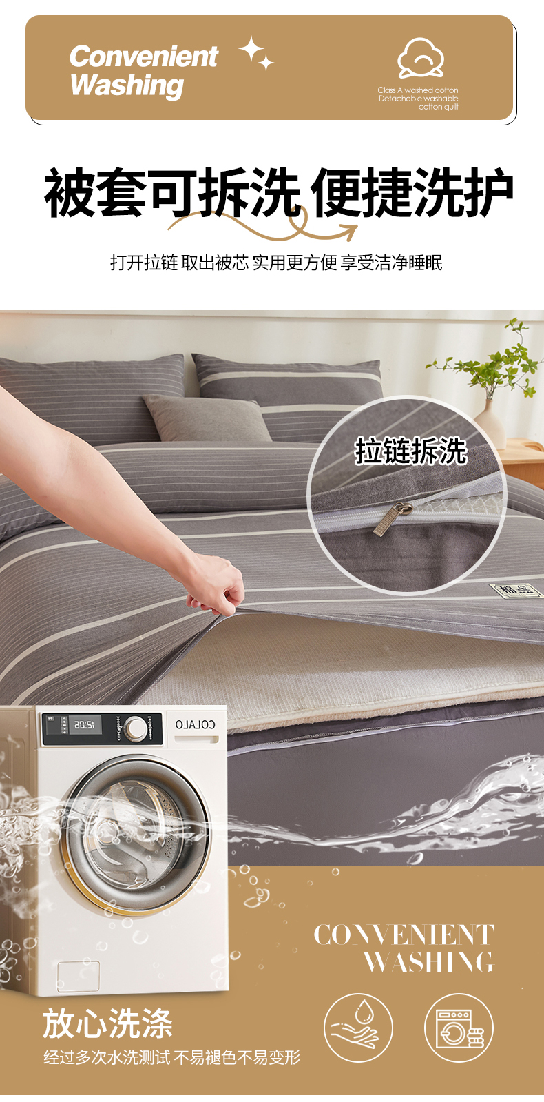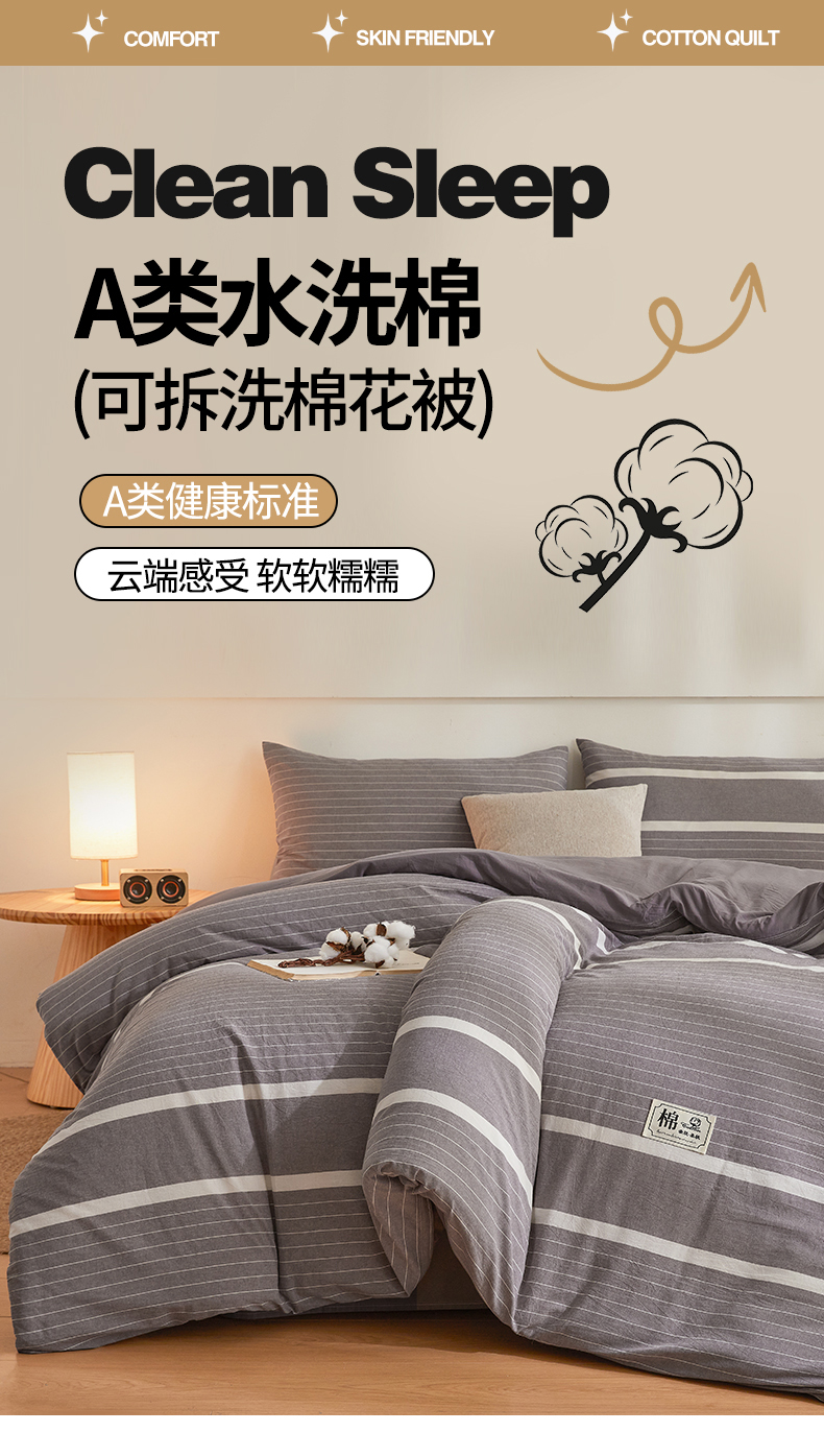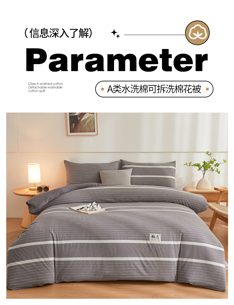 • 91家纺网 家纺一手货源 找家纺 晓时候 2025新款A类水洗棉可拆洗新疆棉花被冬被春秋被夏被四季被子被芯 灰细条