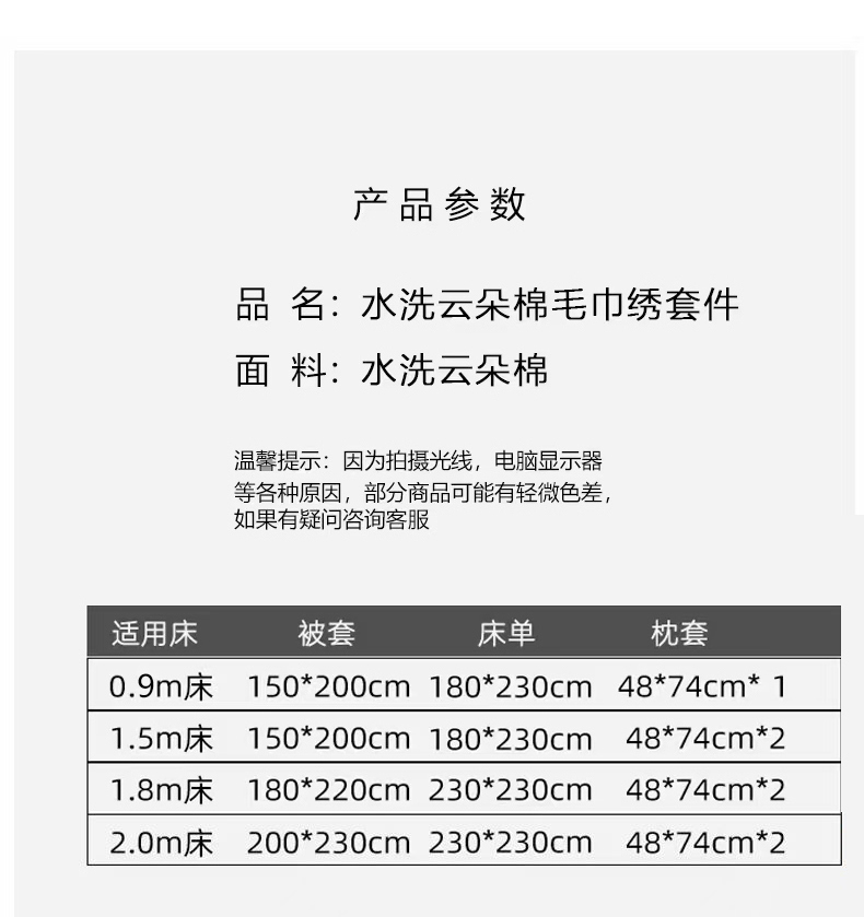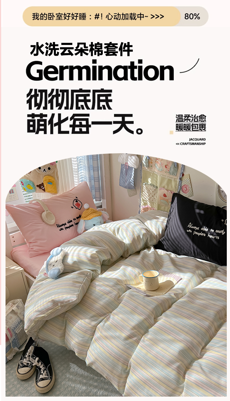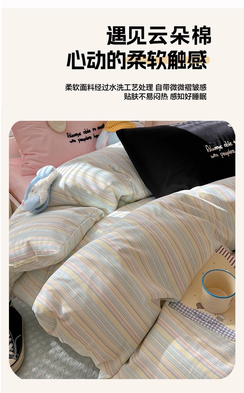 商品名称:(总)子钦家纺 2025新款云朵棉水洗棉Ins风简约学生宿舍三件套