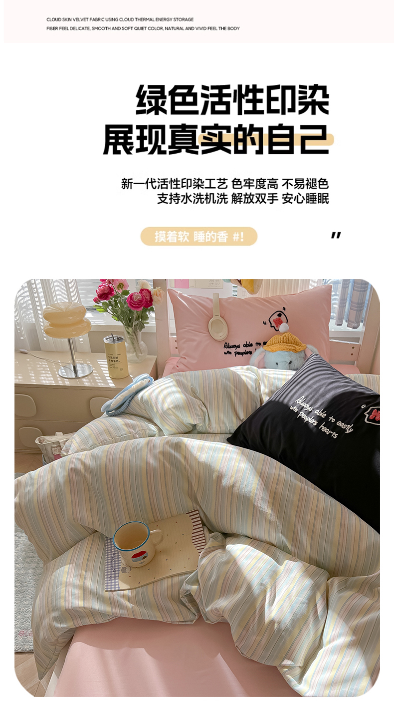 (总)子钦家纺 2025新款云朵棉水洗棉Ins风简约学生宿舍三件套