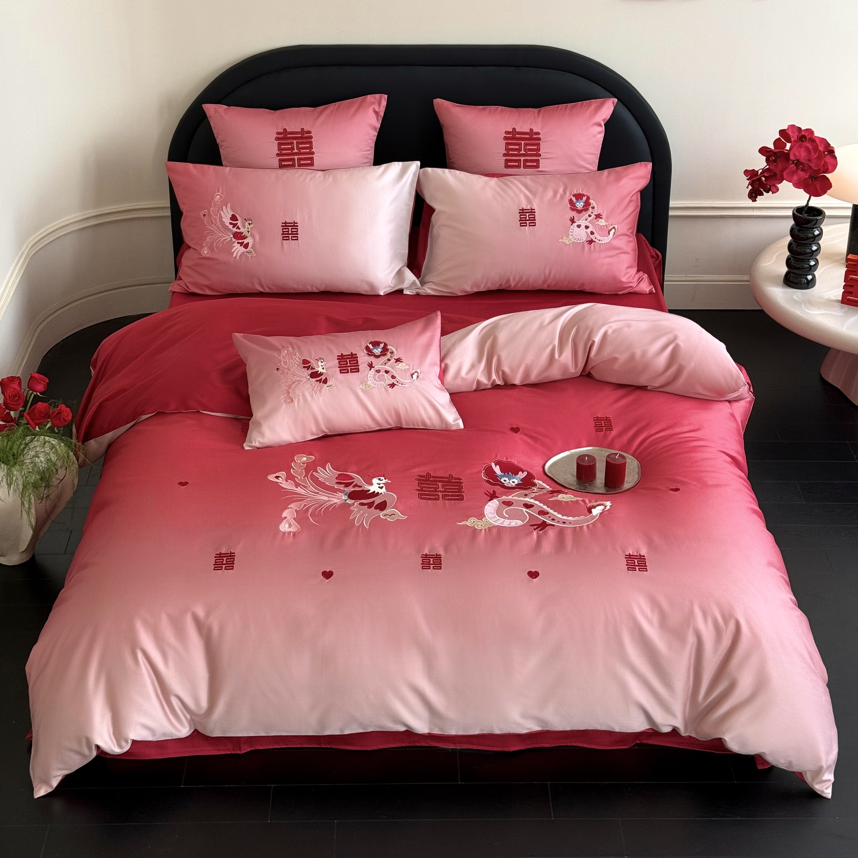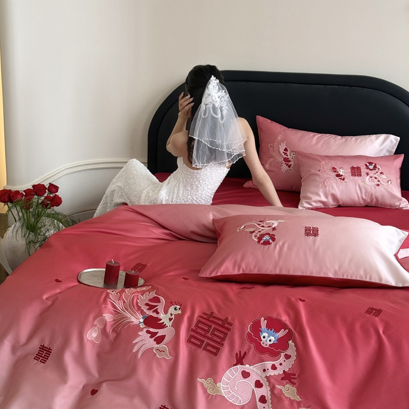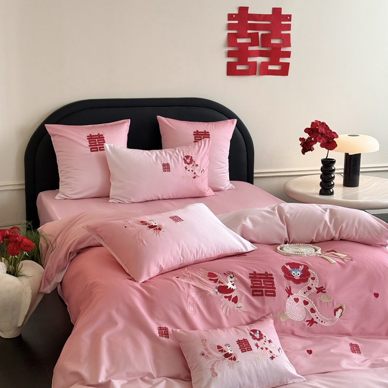 (总)江涞 2026新款100支长绒棉进口高端刺绣可摘卸流苏四件套-迎喜(淘宝券后不低于 418/438),迎喜