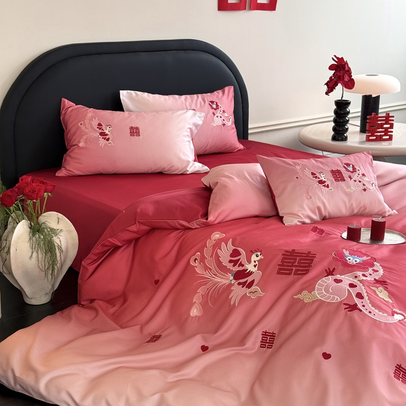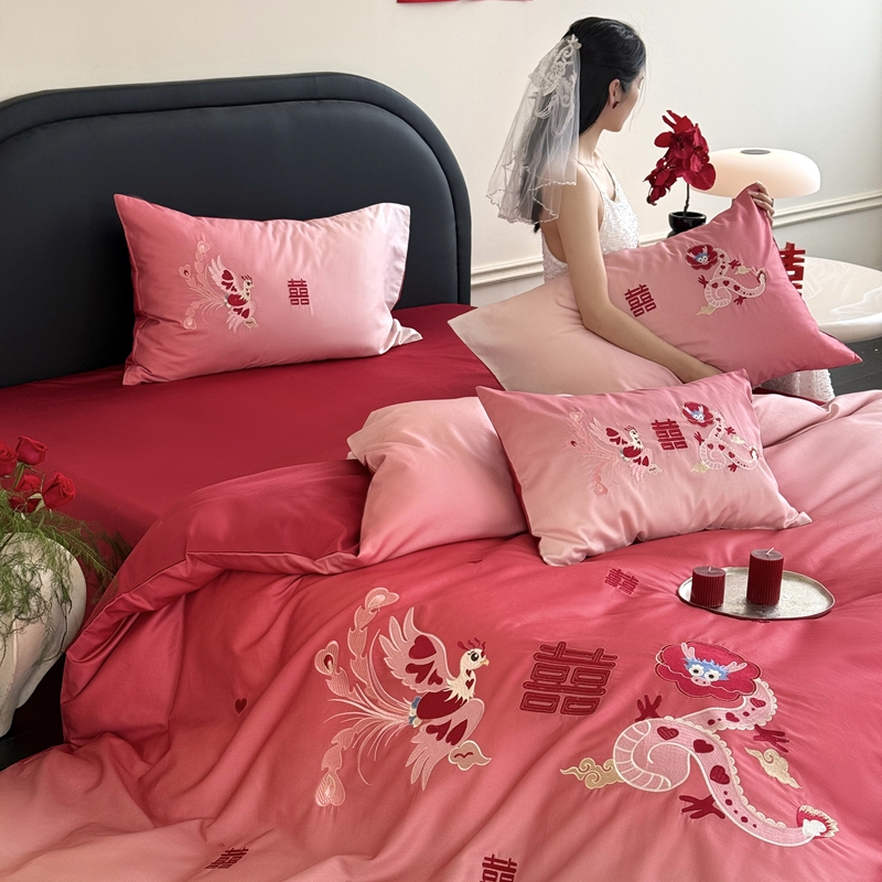 江涞 2025新款长绒棉数码印花刺绣四件套--小美满 小美满-红