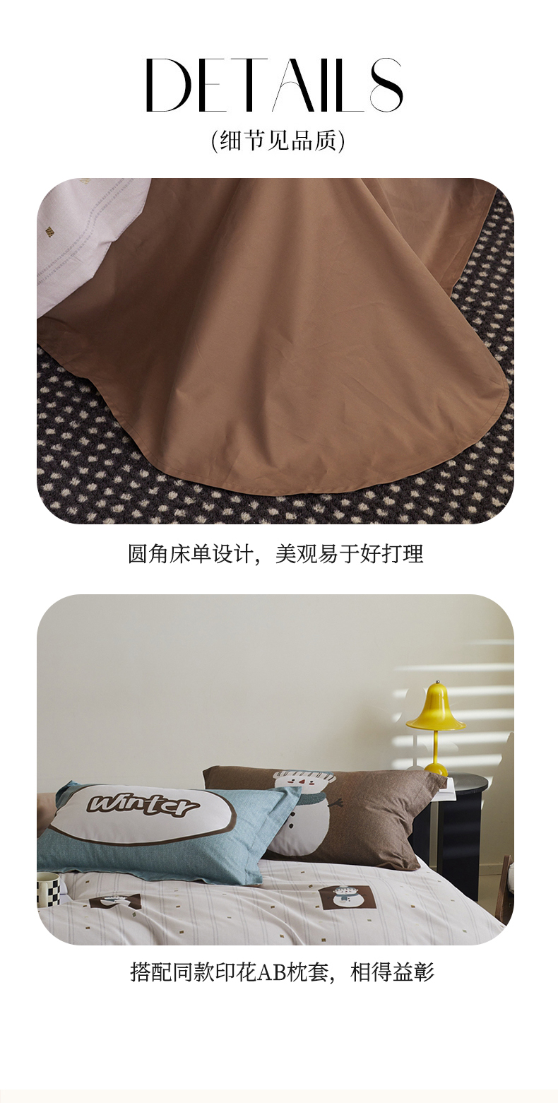 商品名称:由丽2025新款卡通磨毛印花四件套(控价券后不低于小号190,标准210,加大225) 圣诞-米