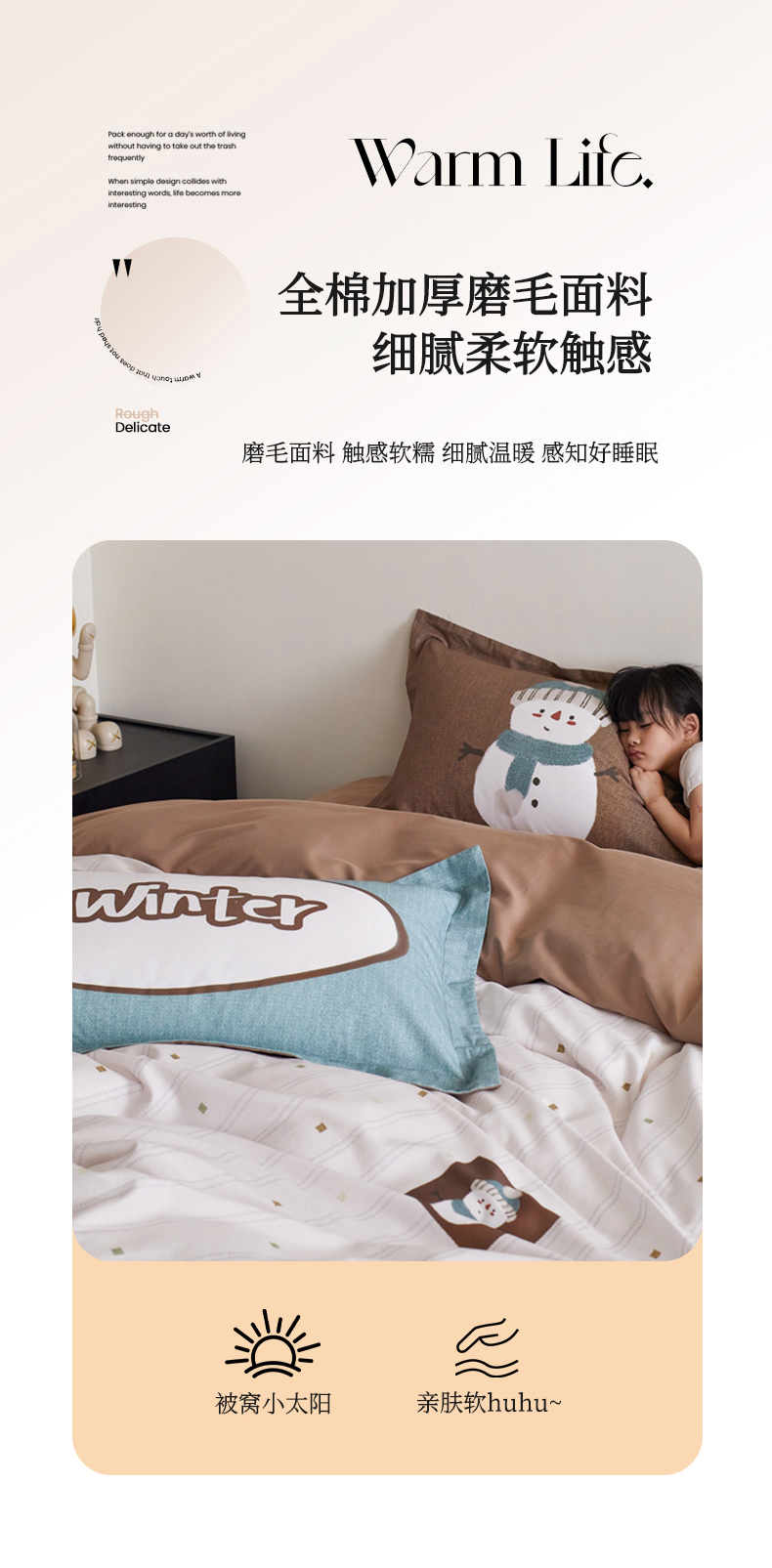 由丽2025新款卡通磨毛印花四件套(控价券后不低于小号190,标准210,加大225) 圣诞-米