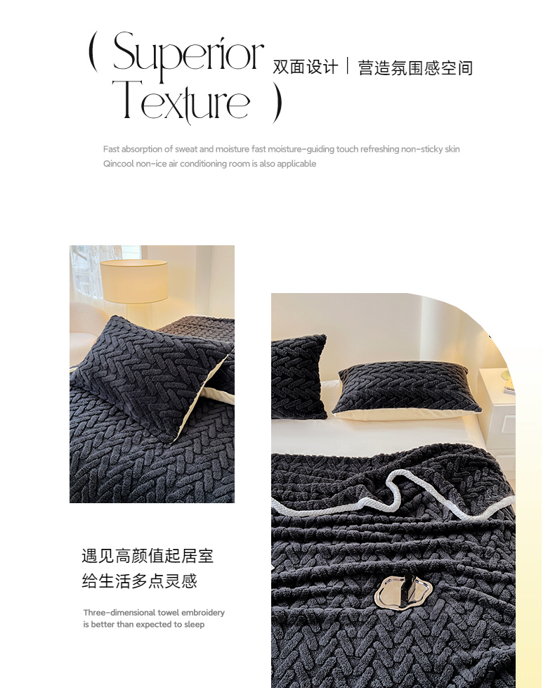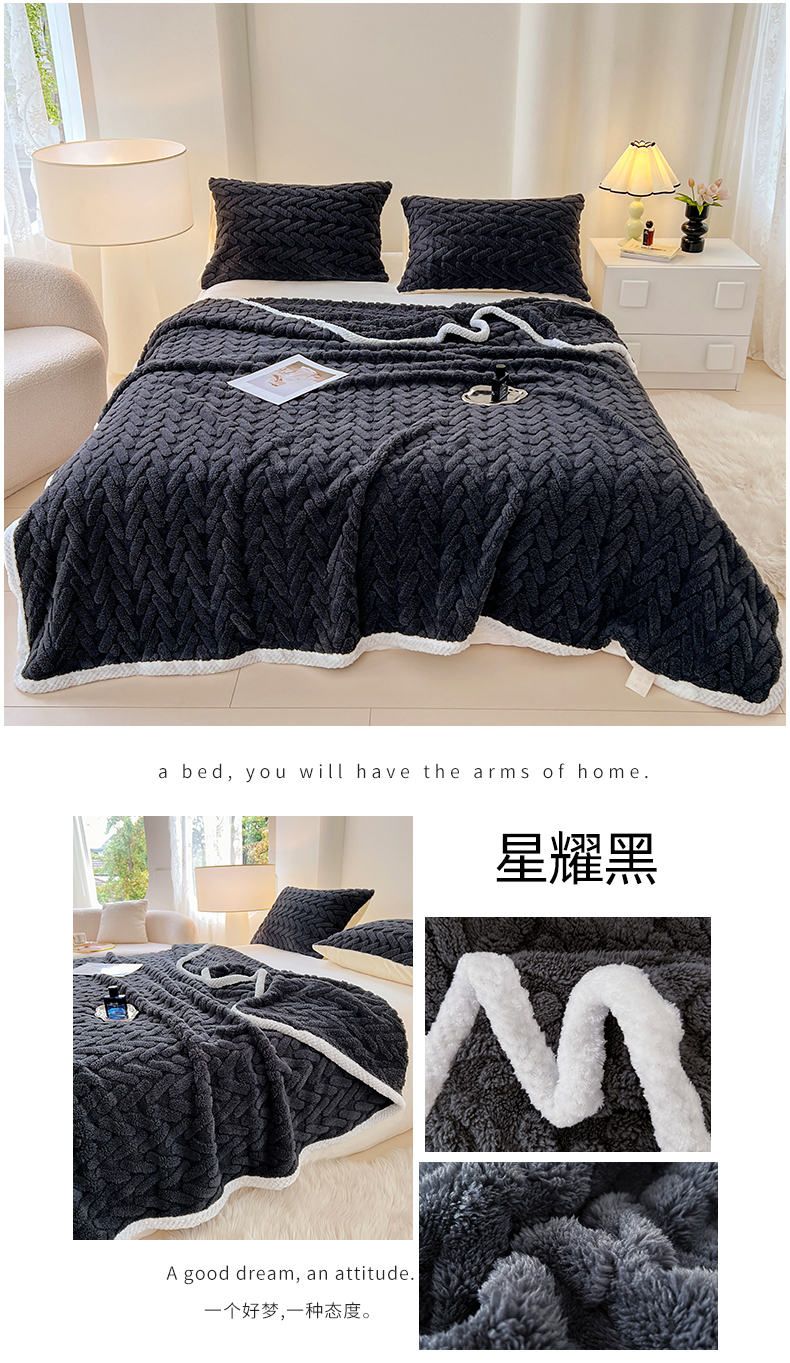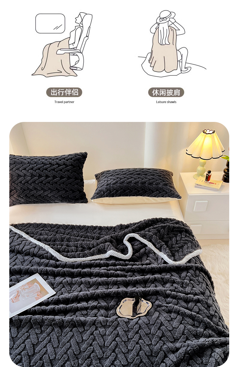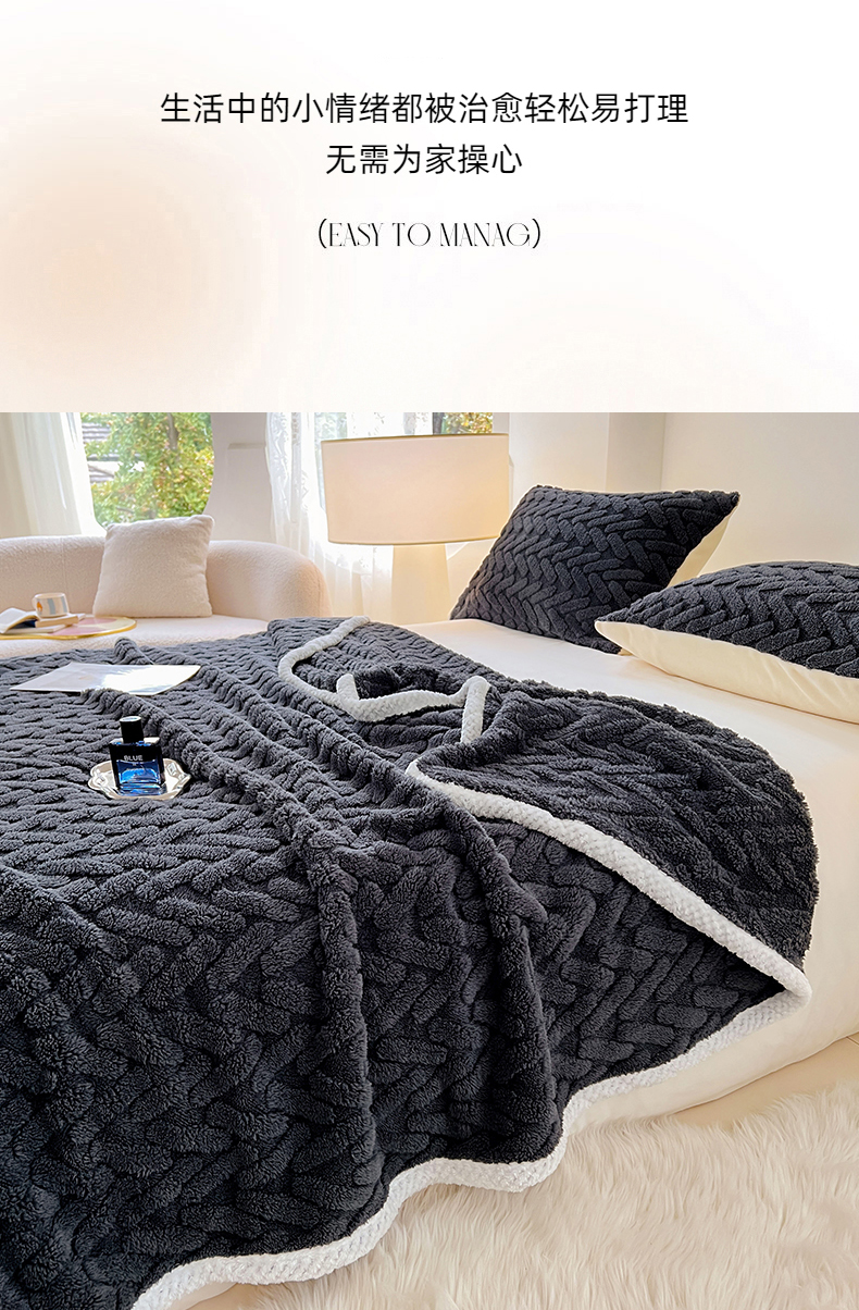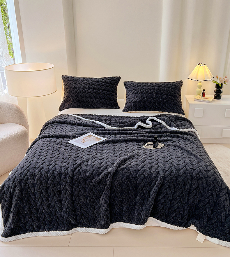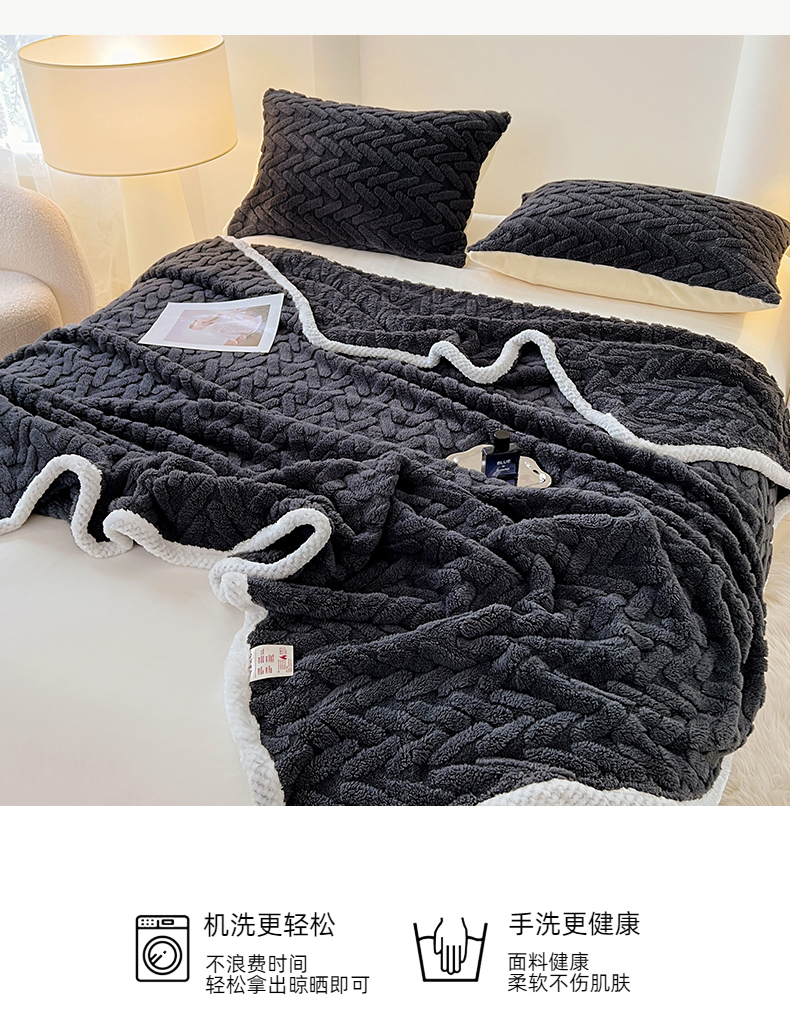 商品名称:锦润家纺 2025新款A类双面塔芙绒包边毛毯塔芙绒-深灰