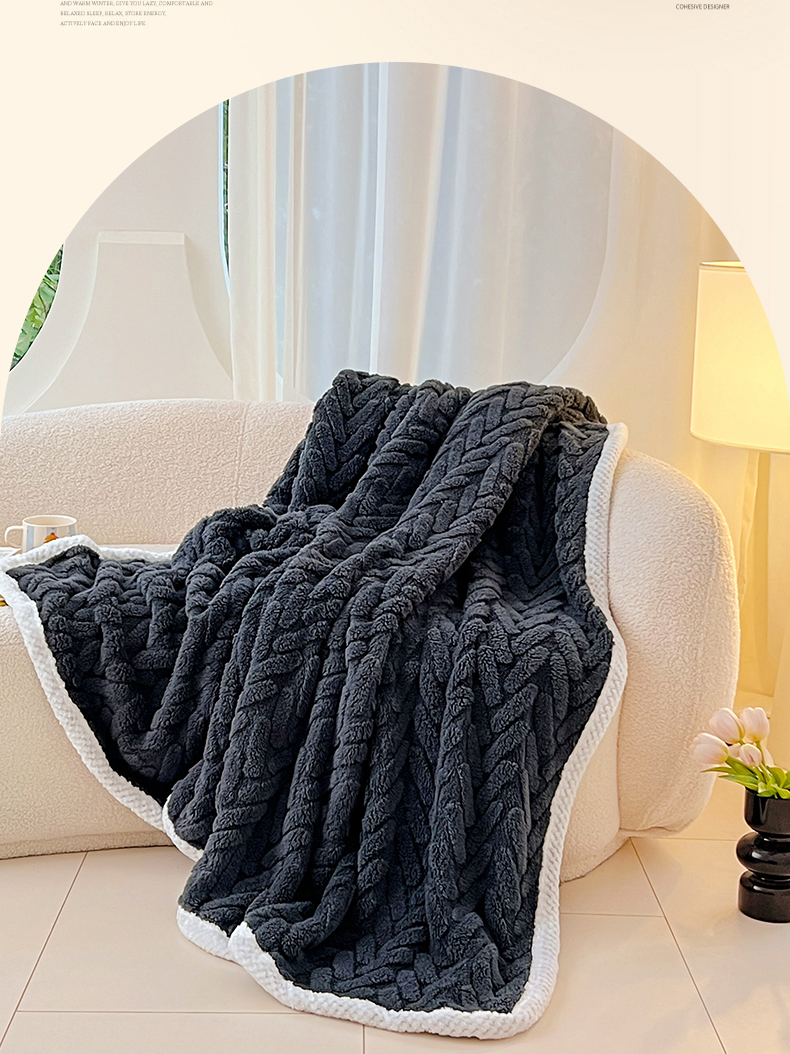 锦润家纺 2025新款A类双面塔芙绒包边毛毯塔芙绒-深灰