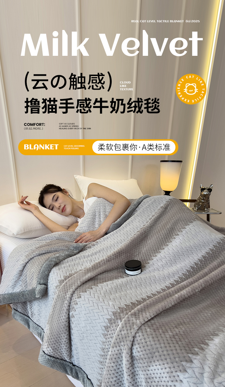 商品名称:(总)世纪绒品 2025新款A类撸猫色织牛奶绒多功能毛毯