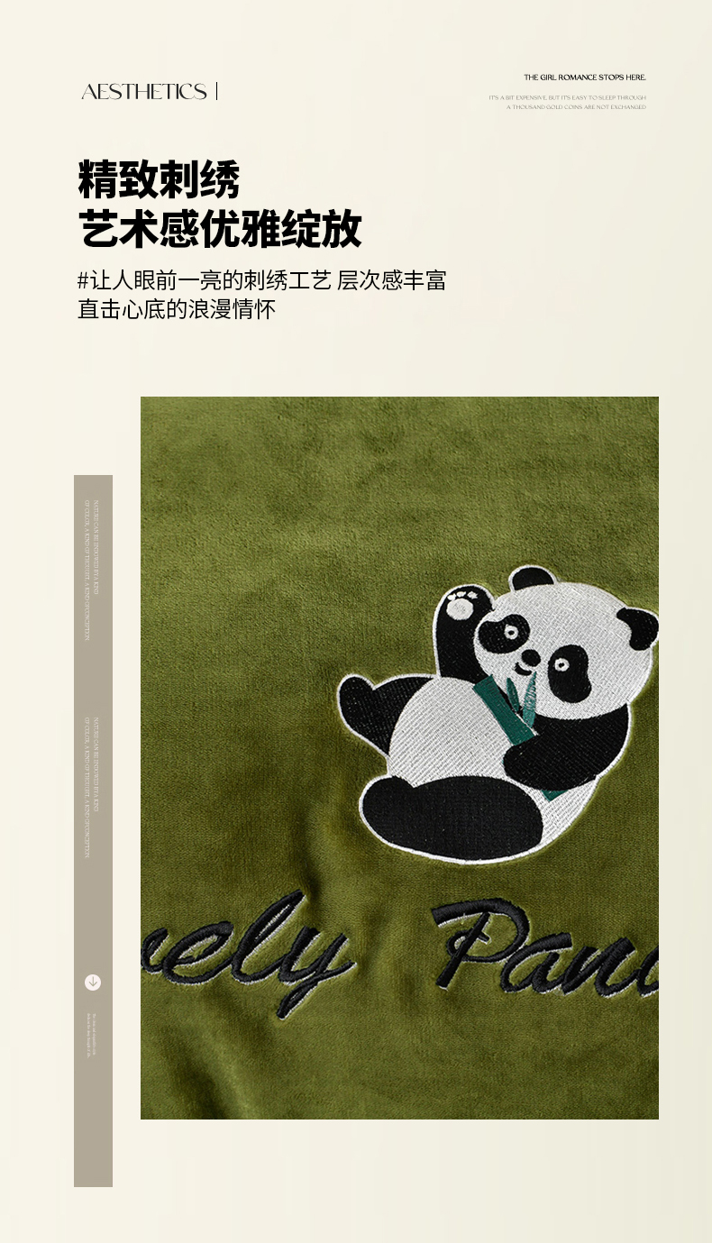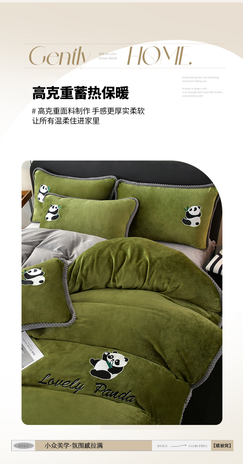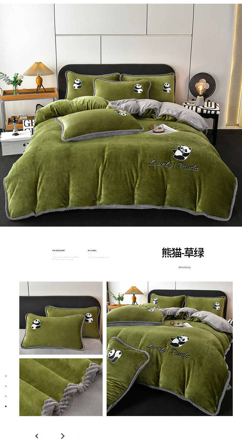 商品名称:妮恒美 2025新款加厚牛奶绒刺绣四件套-熊猫系列 熊猫-草绿