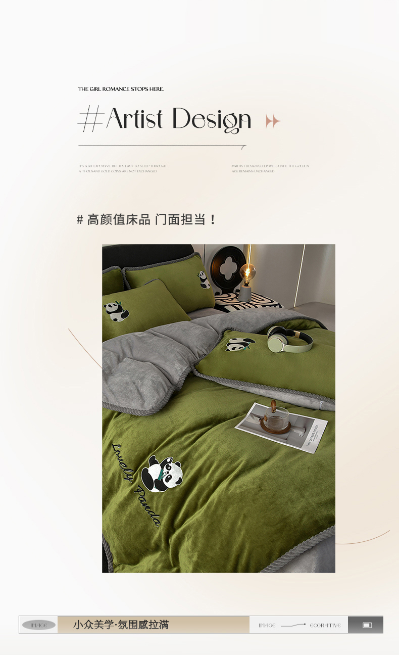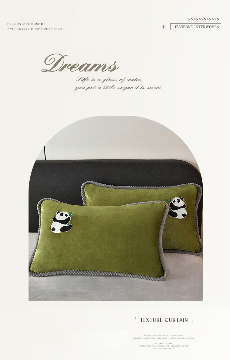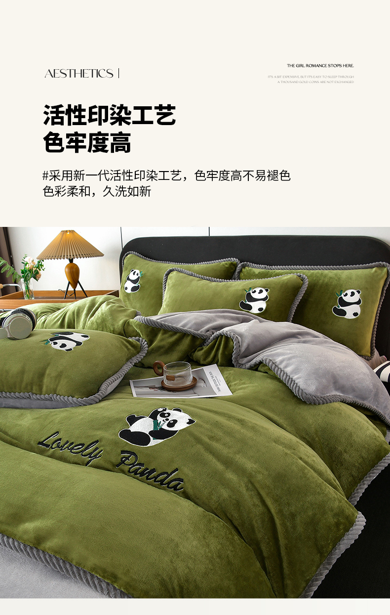 妮恒美 2025新款加厚牛奶绒刺绣四件套-熊猫系列 熊猫-草绿