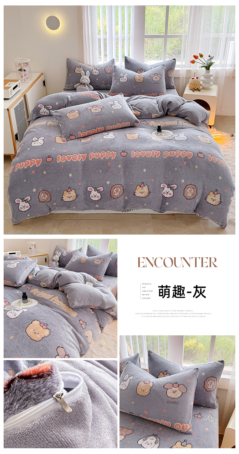 商品名称:慕梵家居2025新款雪花绒被套 萌趣-灰