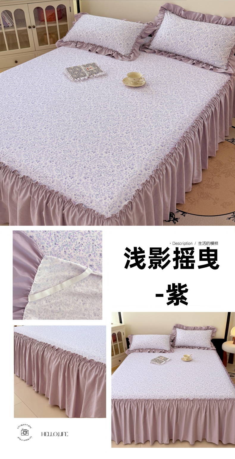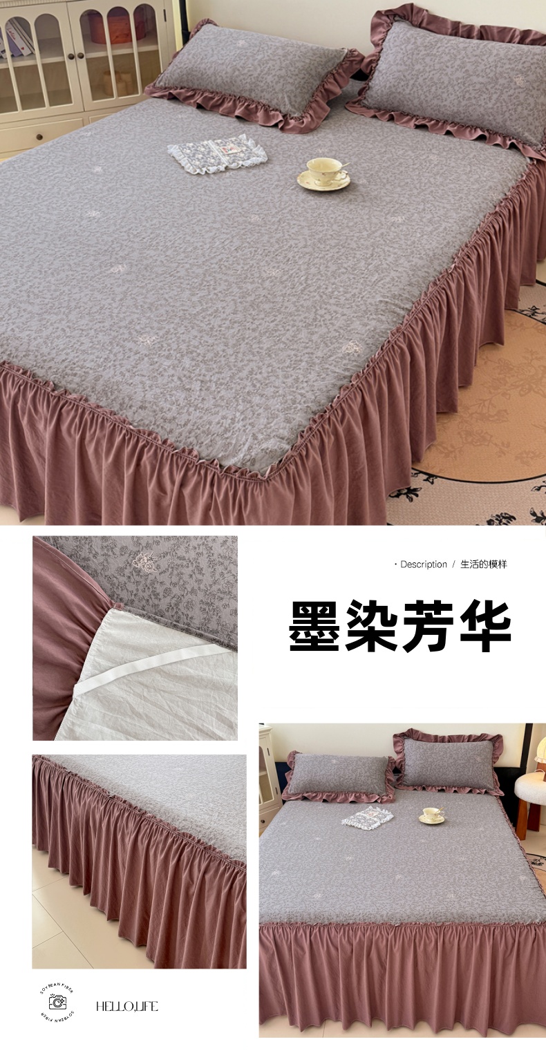 (总)梦舒羽 2025新款水洗珍珠棉单件床裙双层纱床垫保护罩三件套,玫瑰之约,柏林梦境-咖,花未眠-紫,花知晓,蓝相思,墨染芳华,宁静花园,怦然心动,浅影摇曳-紫,樱桃季,云裳花谷,紫倾心,组合图仅供展示