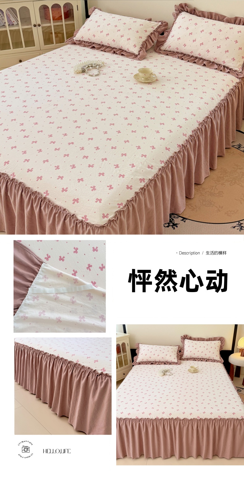商品名称:梦舒羽 2025新款水洗珍珠棉单件床裙双层纱床垫保护罩三件套 樱桃季