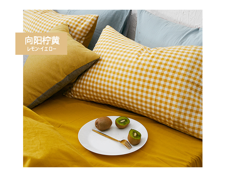 • 91家纺网 家纺一手货源 找家纺 贝尔 PELLHOME 纯棉枕套纯色良品格子水洗棉简约48*74单人(可抖音代发) 芥子黄
