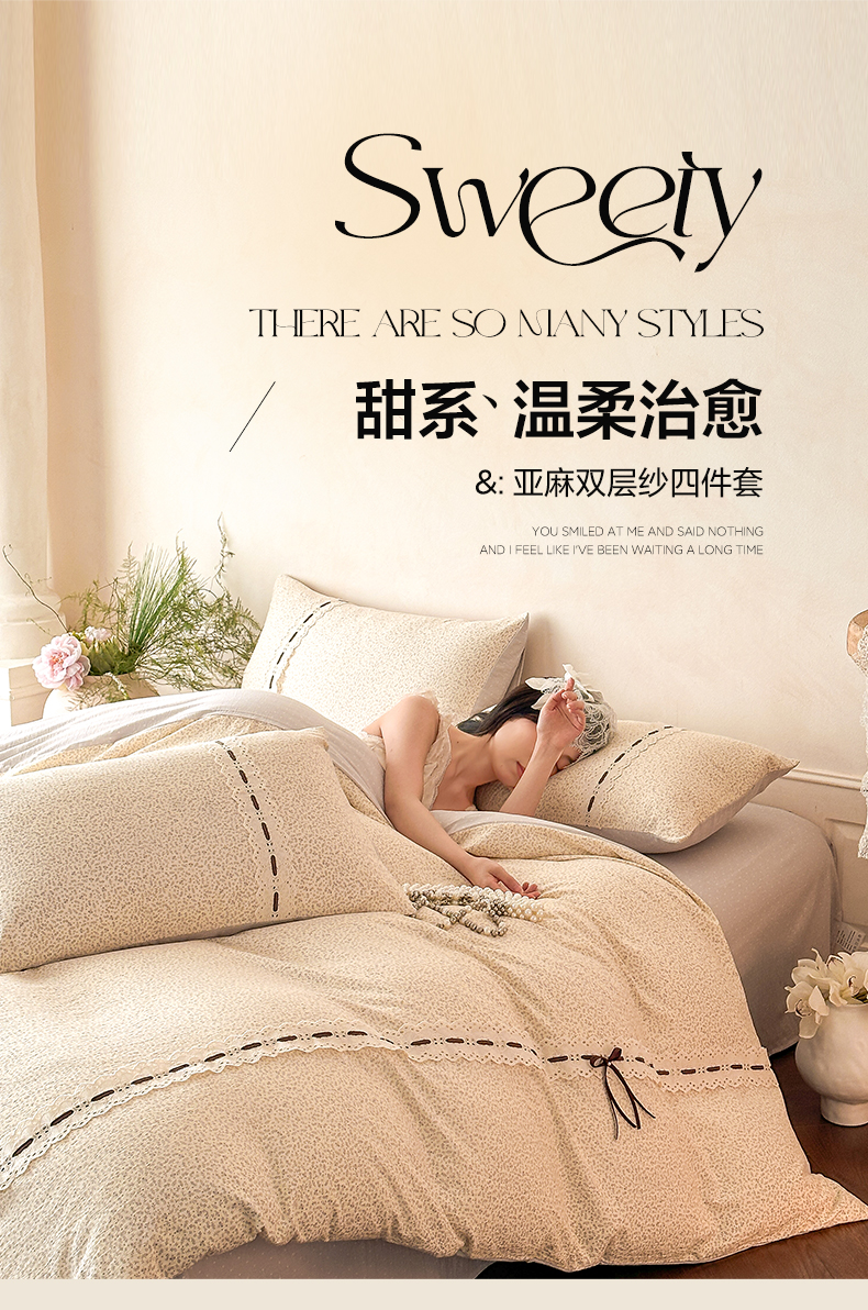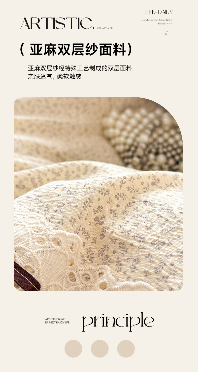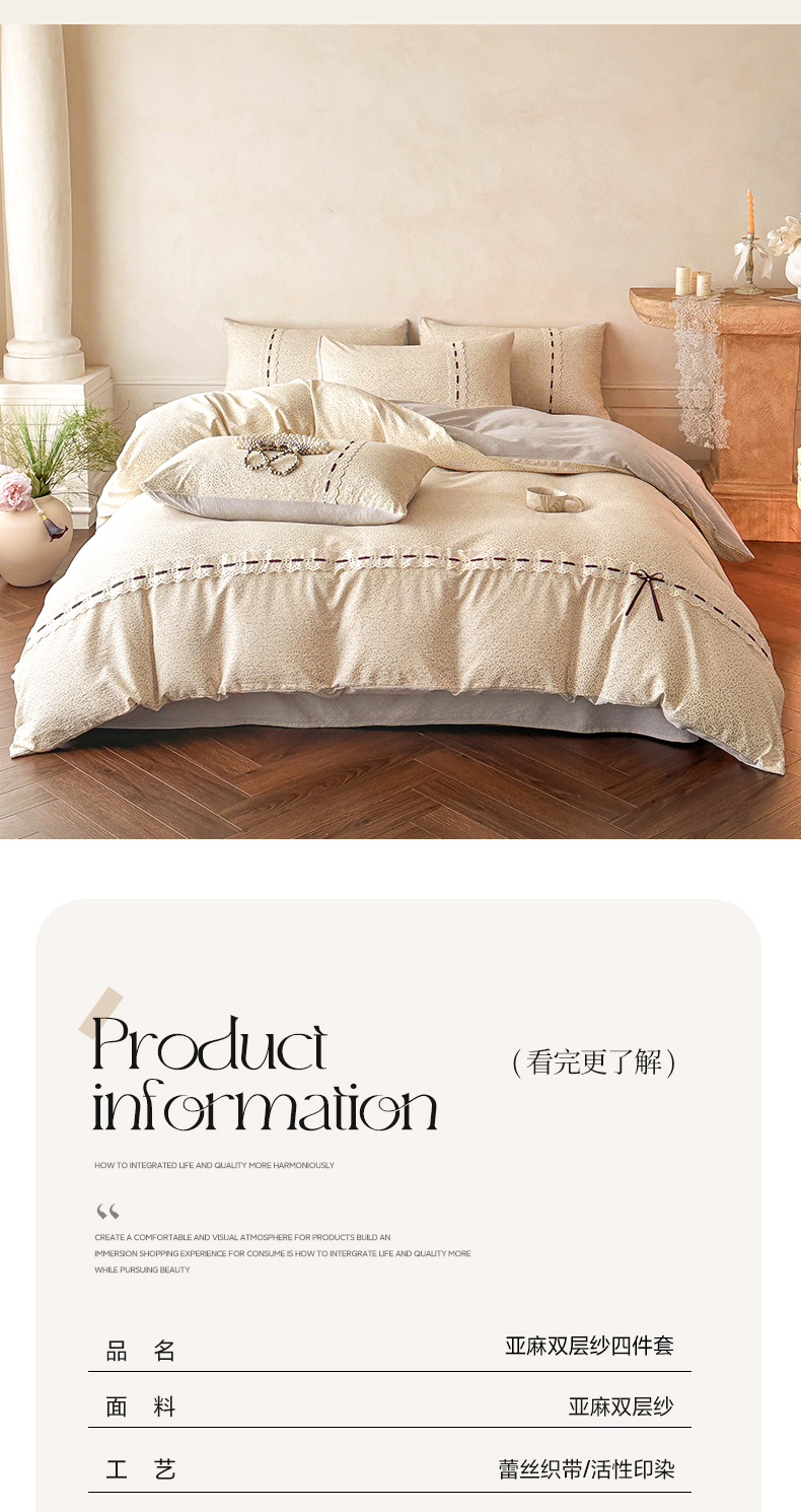 (总)遇见家居生活馆 2025新款亚麻双层纱印花四件套-往事,往事-枫叶红,往事-复古咖,往事-奶油黄,往事-浅灰色,往事-深灰色