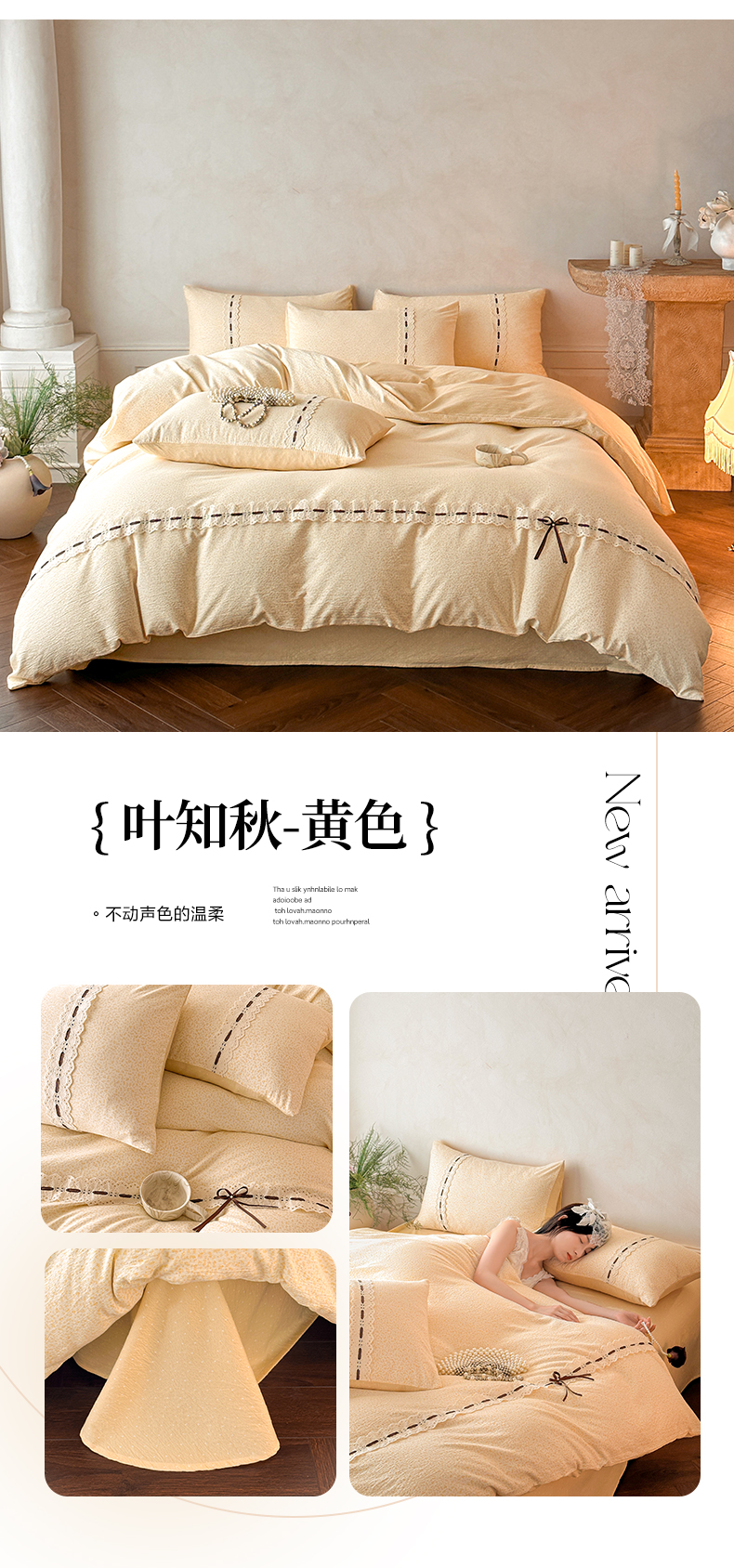 (总)遇见家居生活馆 2025新款亚麻双层纱四件套-叶知秋(小号108 标准128,加大138),叶知秋-粉,叶知秋-黄色,叶知秋-灰紫,叶知秋-卡其,叶知秋-蓝色,叶知秋-绿,叶知秋-紫色