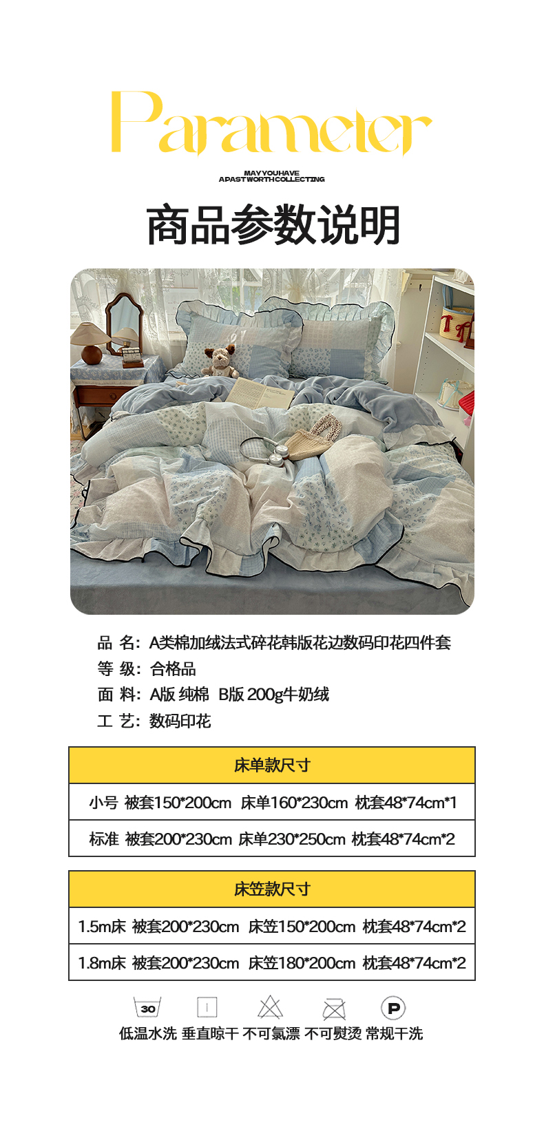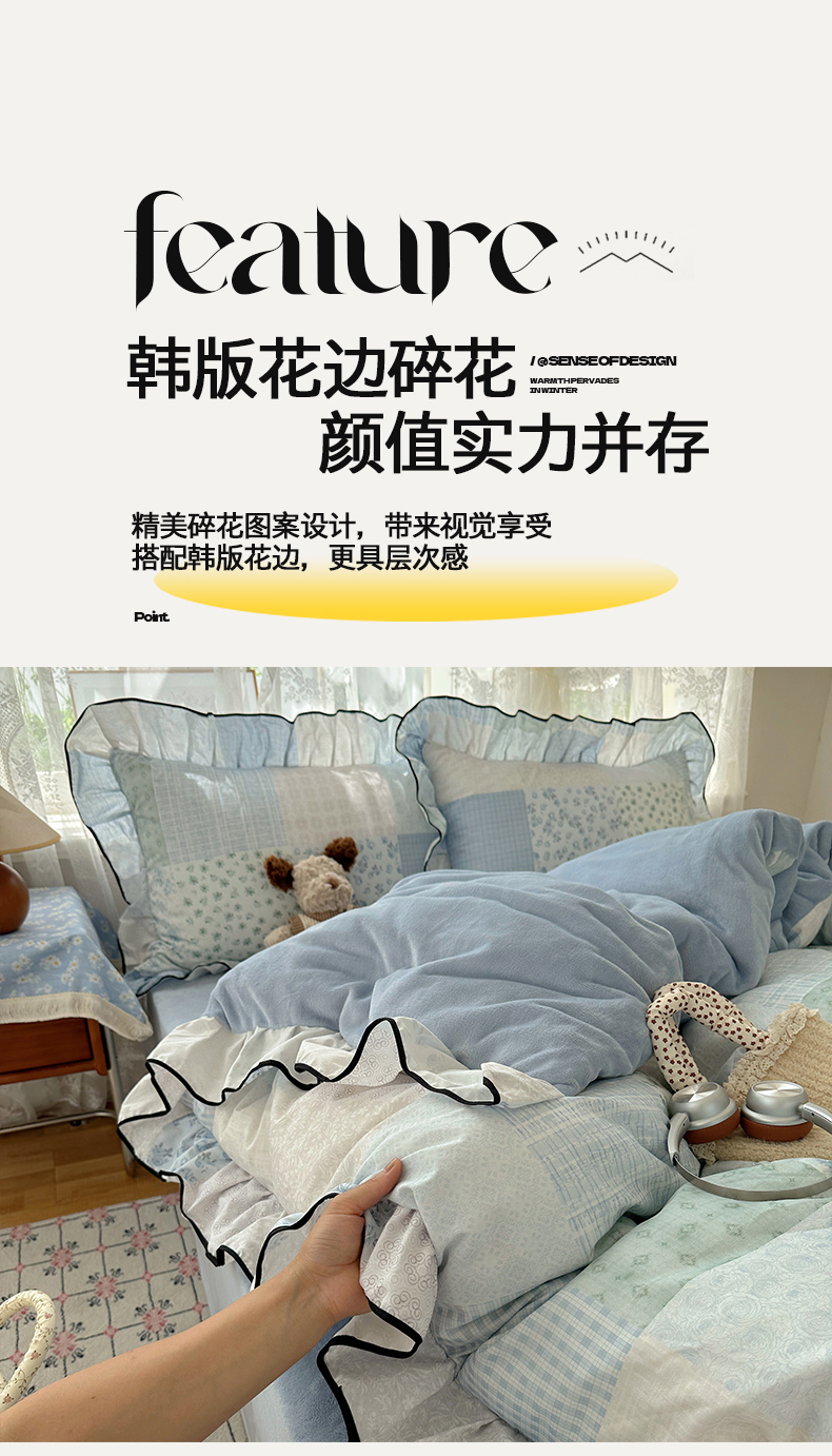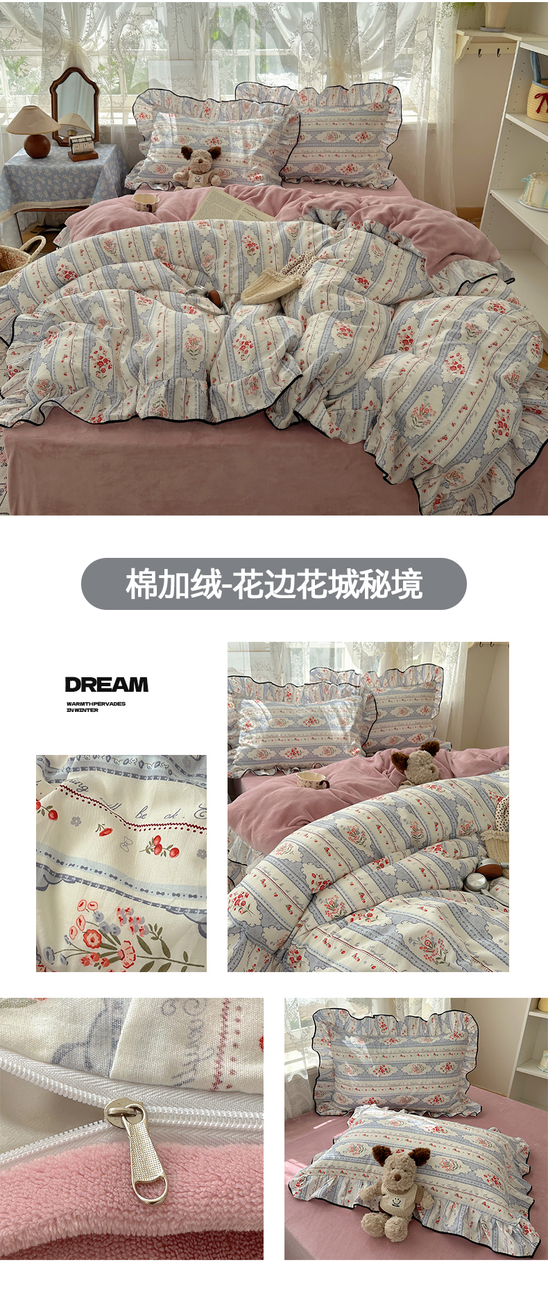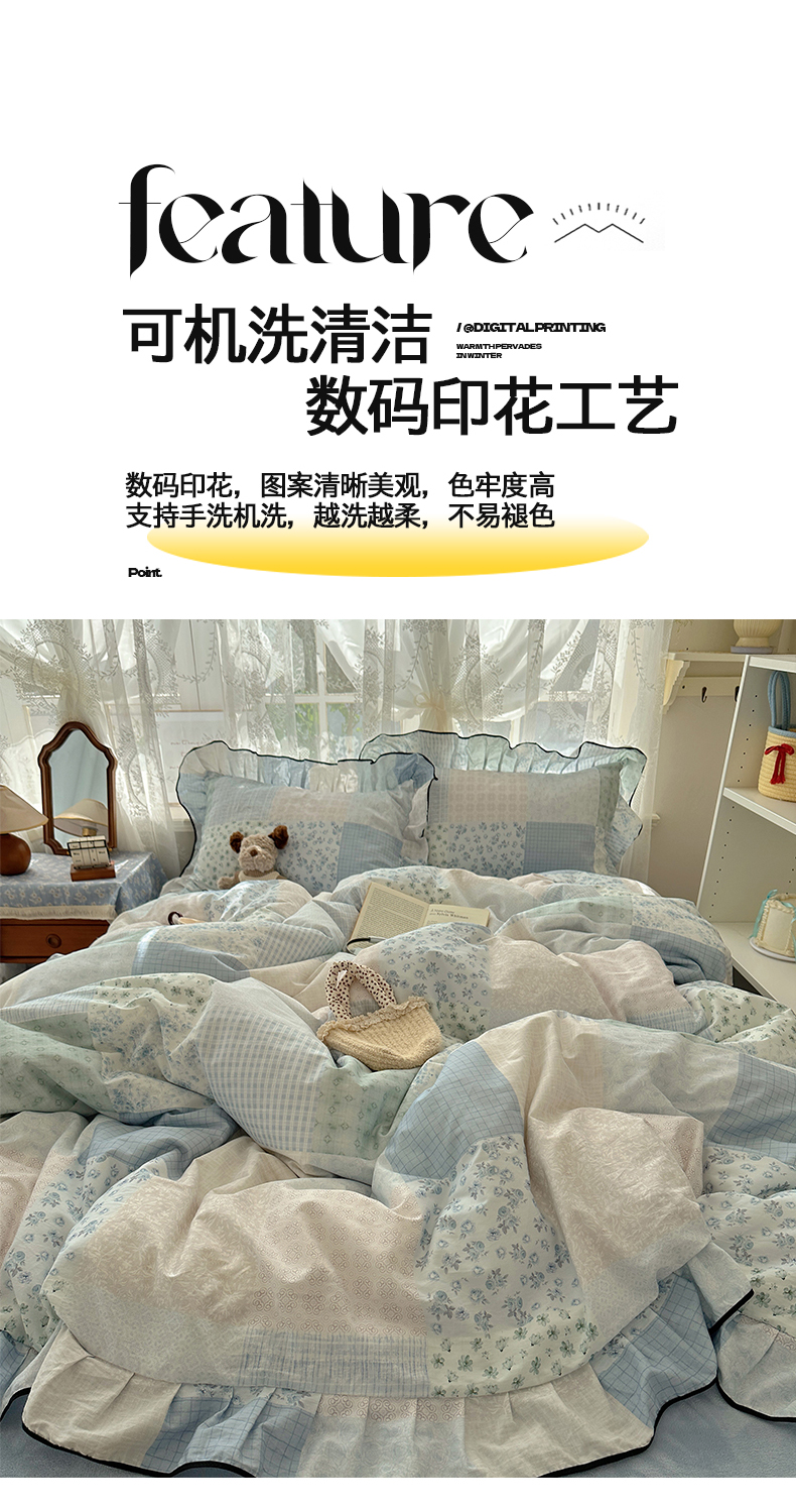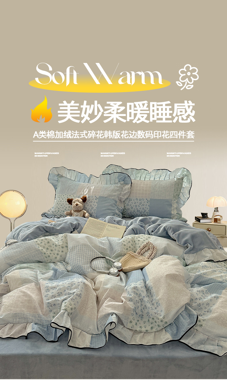 当前位置: 91家纺网 > 商品网购 > 床品套件 > 四件套 > 牛奶绒四件套 > 桃子家居 2025新款A类纯棉数码印花法式碎花棉加绒韩版花边碎花加厚牛奶绒四件套 棉加绒-花边花栖礼蓝