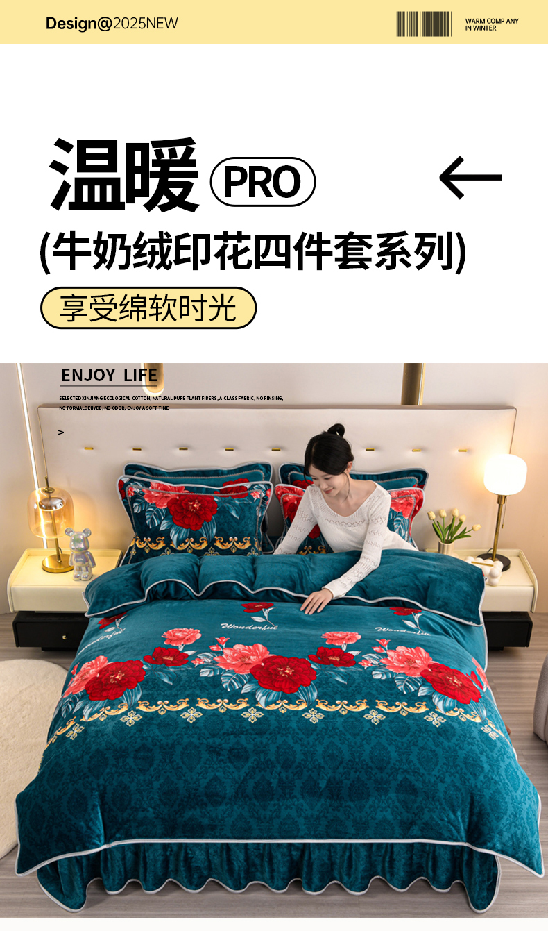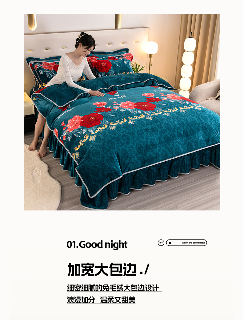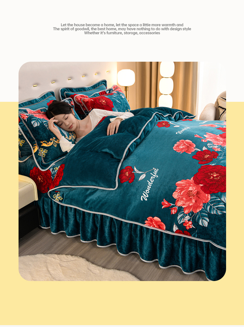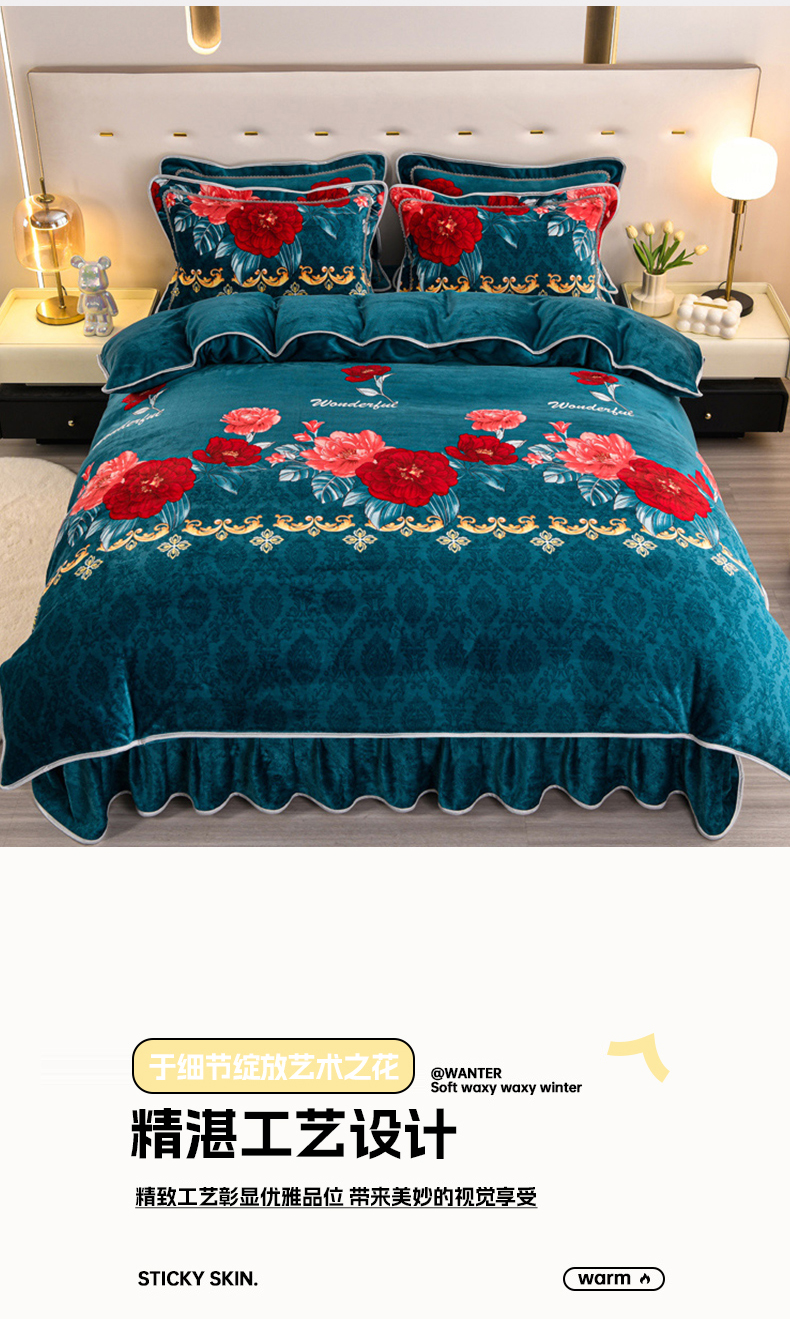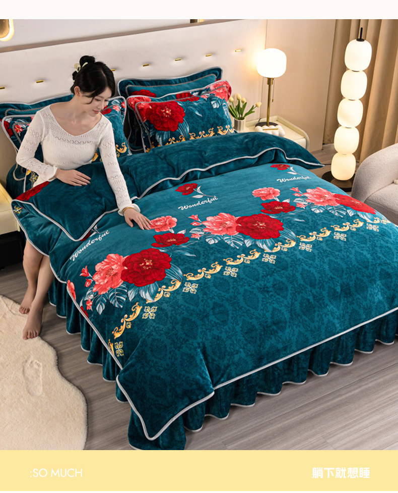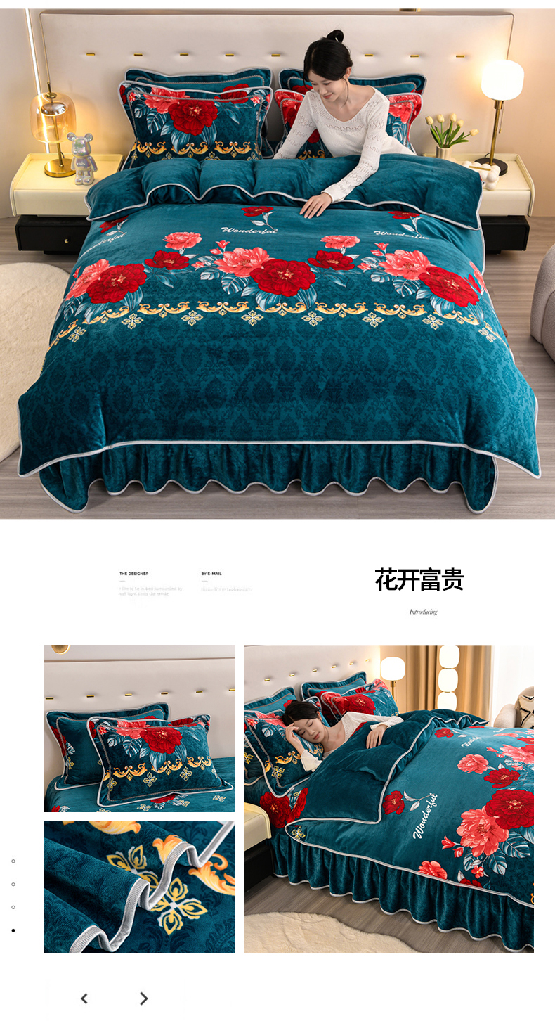 当前位置: 91家纺网 > 商品网购 > 床品套件 > 四件套 > 牛奶绒四件套 > 晚静 2025新款7斤牛奶绒四件套金貂法莱绒床裙款保暖绒三件套 花开富贵
