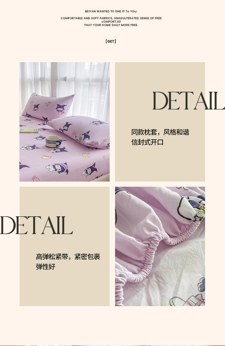 商品名称:鼎丰家纺 2025新款90克超柔软糯印花单床笠系列 甜心库洛米