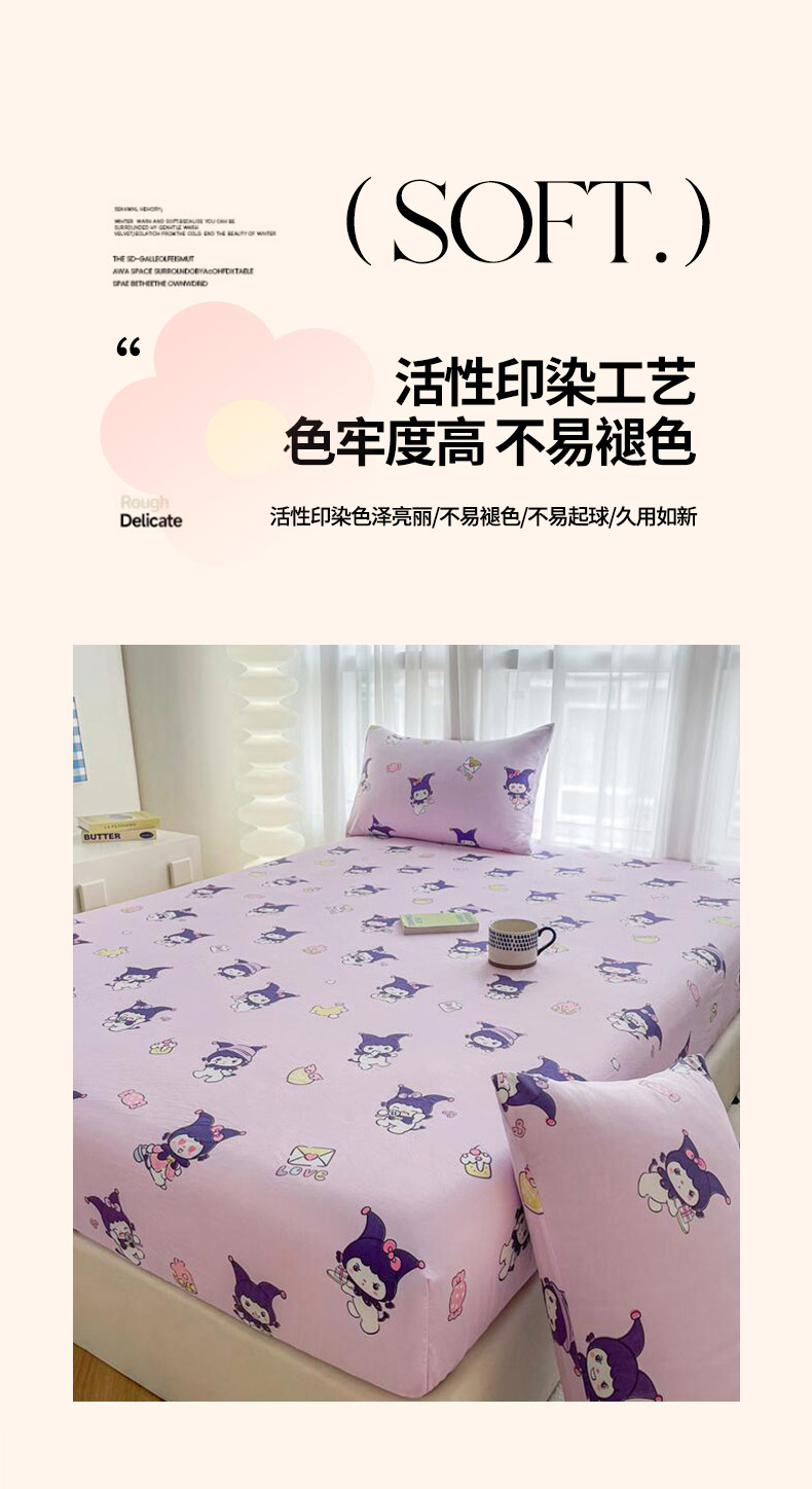 鼎丰家纺 2025新款90克超柔软糯印花单床笠系列 甜心库洛米