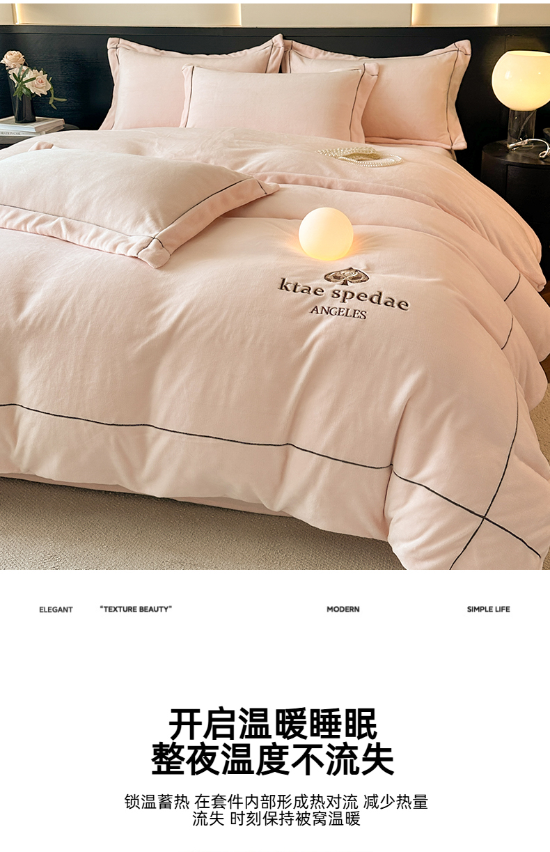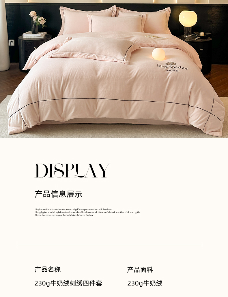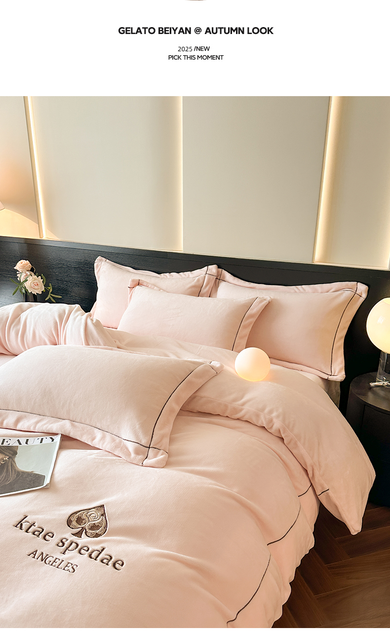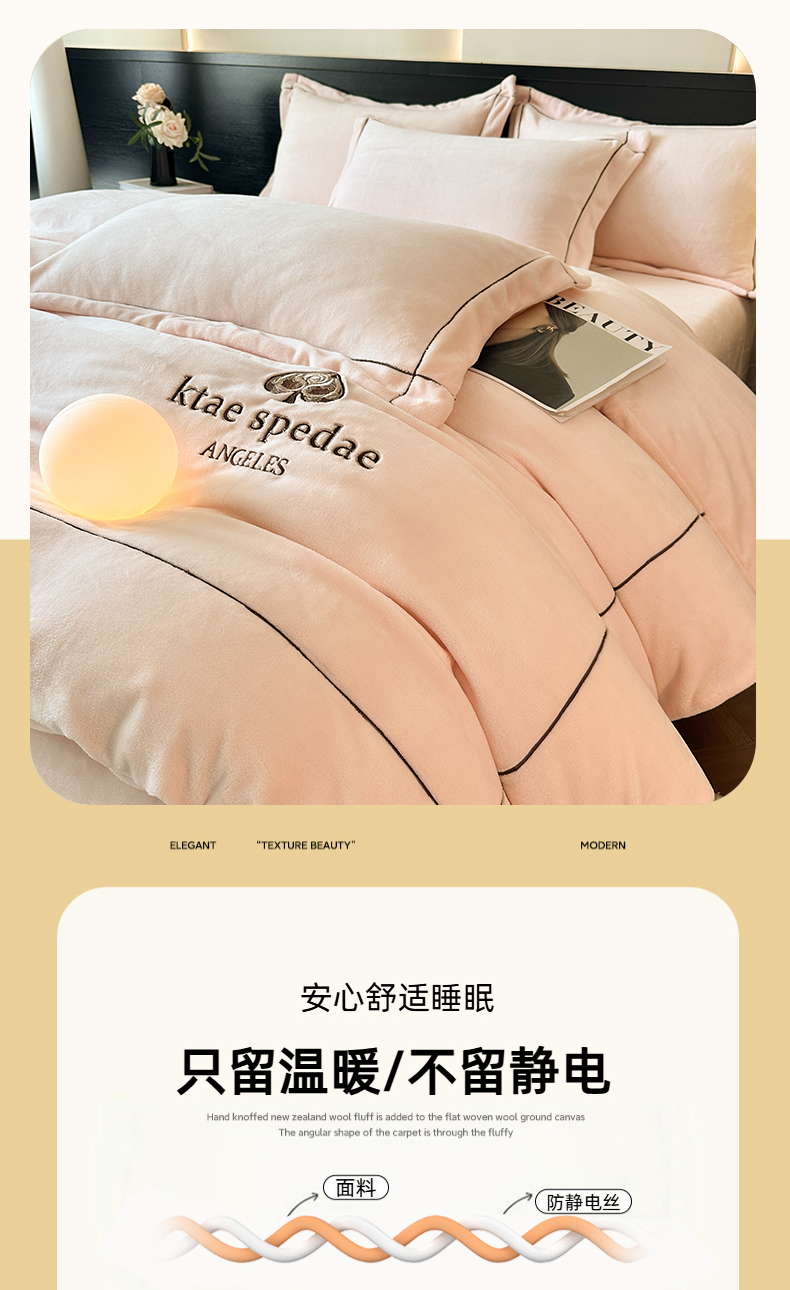 商品名称:狂想家 2025新款刺绣牛奶绒四件套-安琪儿 安琪儿-浅玉粉