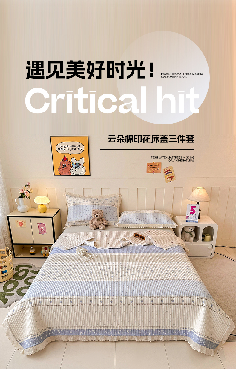 (总)岚吉家纺 2026新款云朵棉床盖三件套,小苍蓝,缤纷小狗,春天里,多彩蝴蝶结,格子蝴蝶结,格子小狗,花海,快乐小象,时光里,兔兔乐园,小呆呆,幽兰,元气女孩,紫色樱桃,紫苏,阿布布