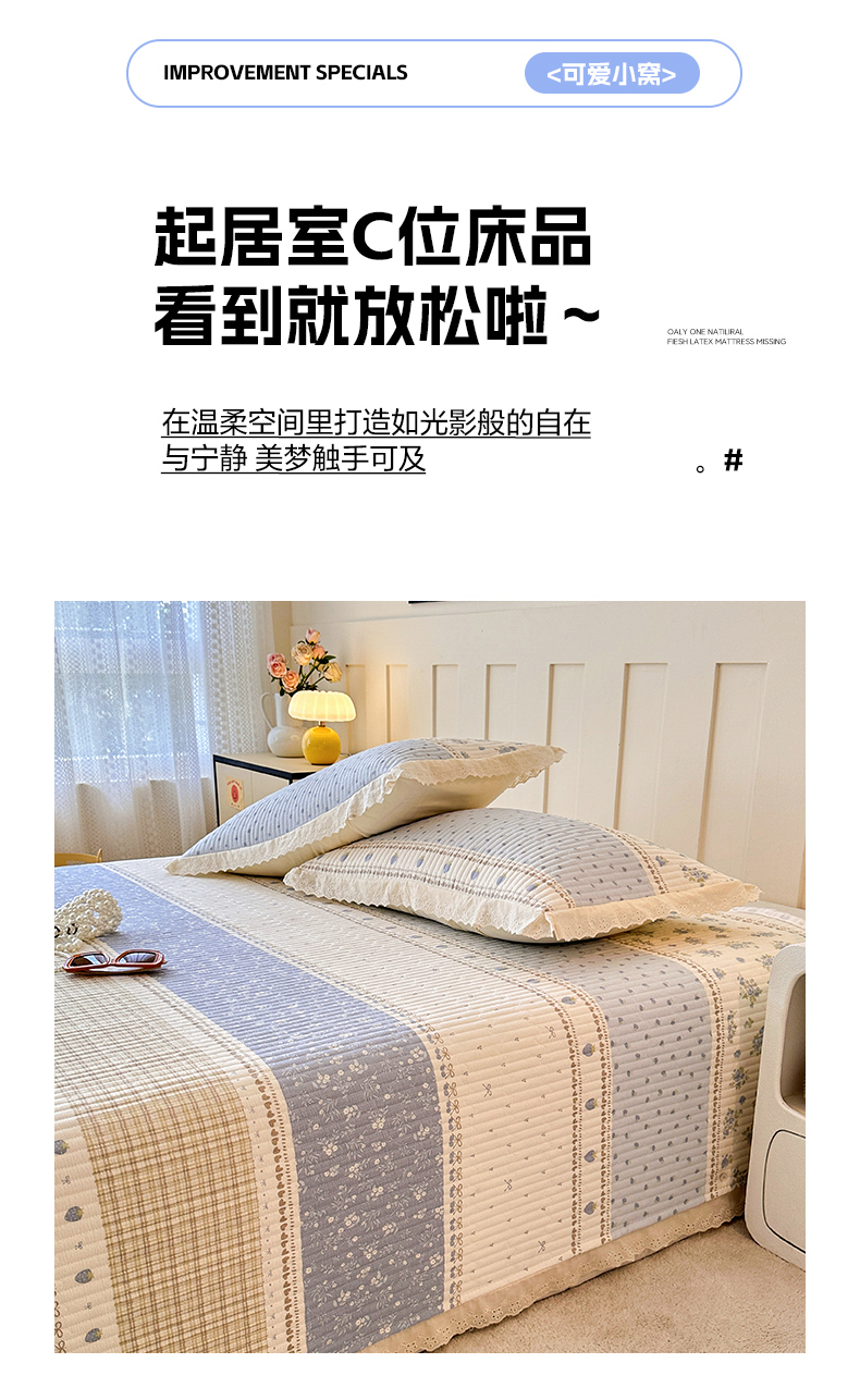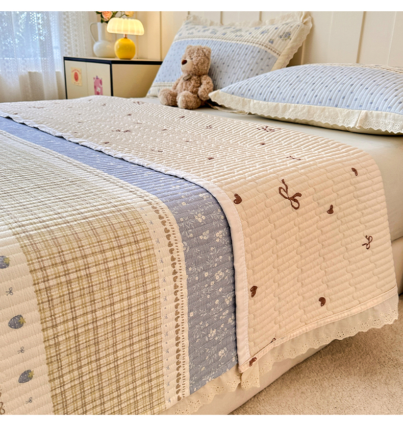 (总)岚吉家纺 2025新款全棉绗缝棉花床盖花边款三件套四件套,缤纷樱桃,草莓格子,花边兔,黄苏条,蓝美人,落落晨光,萌萌狮,蘑菇狗,秋日玫瑰,兔菲菲,向晚,小黑点点(米),游花间