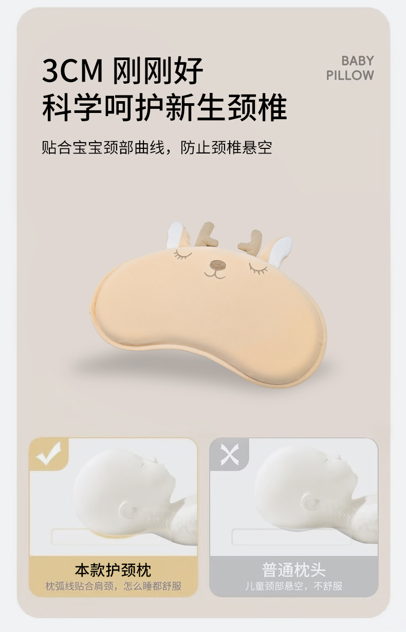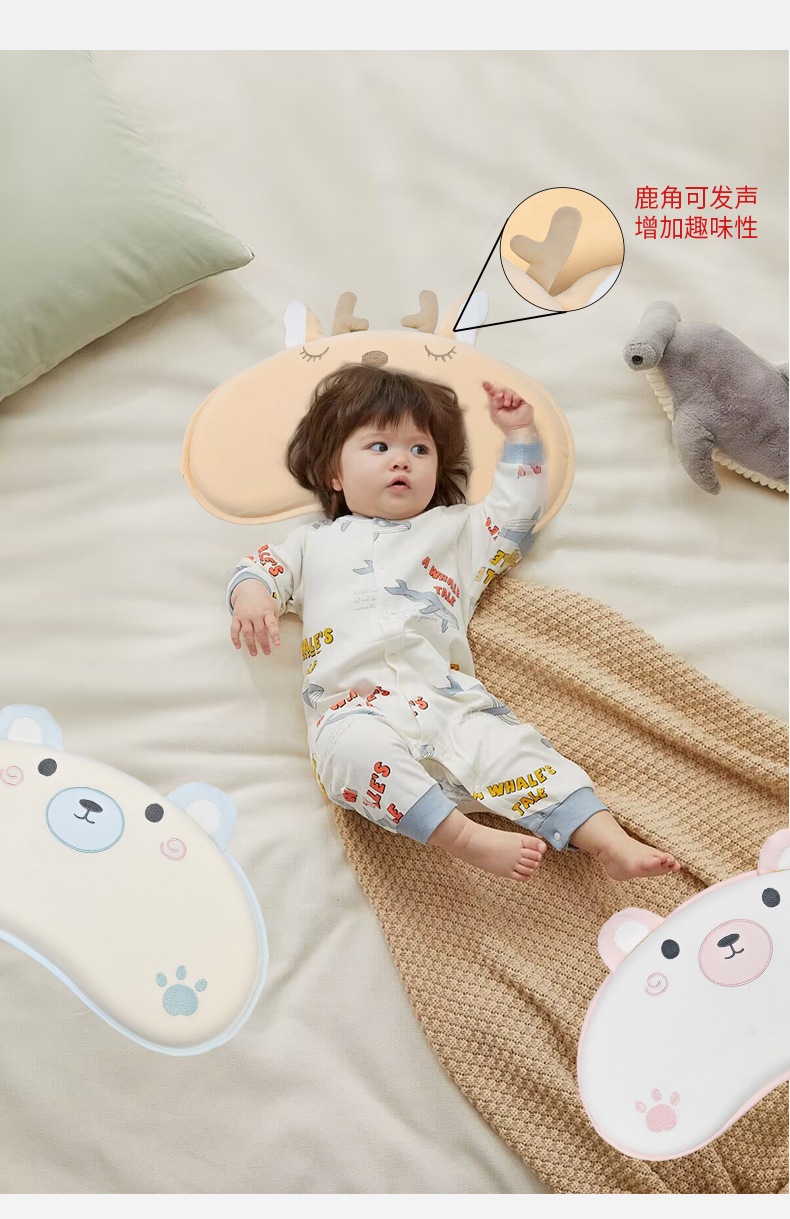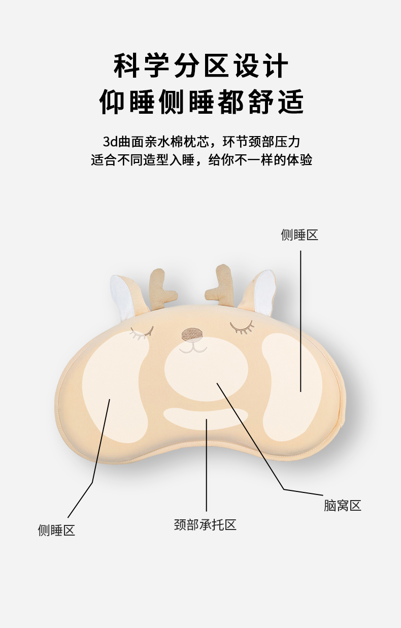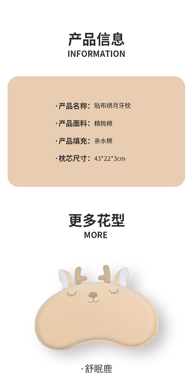 商品名称:小猫派 2025秋冬贴布绣月牙型可水洗亲水棉枕芯(新款9.1号有货) 安睡熊粉