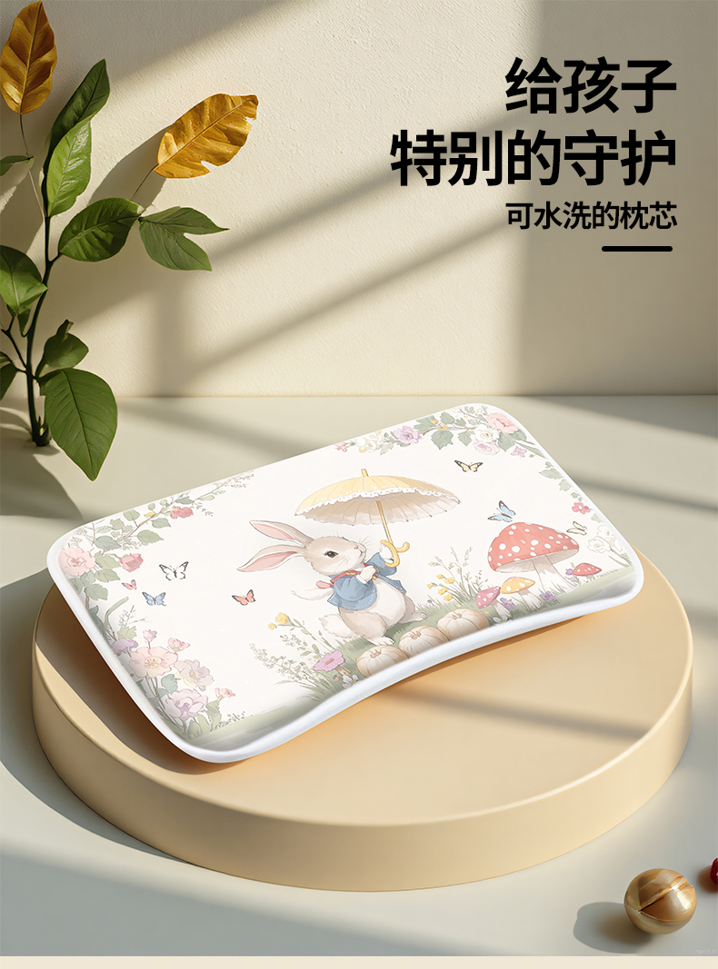 商品名称:小猫派 2025秋冬印花儿童小八字宫崎骏风可水洗亲水棉枕芯(新款9.1号有货)(新款9.1号有货) 学霸小兔-小八字