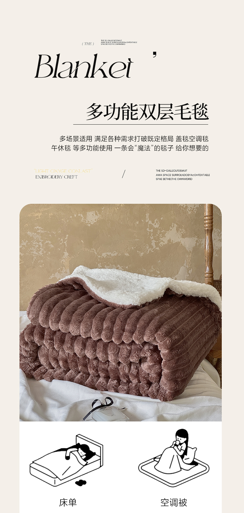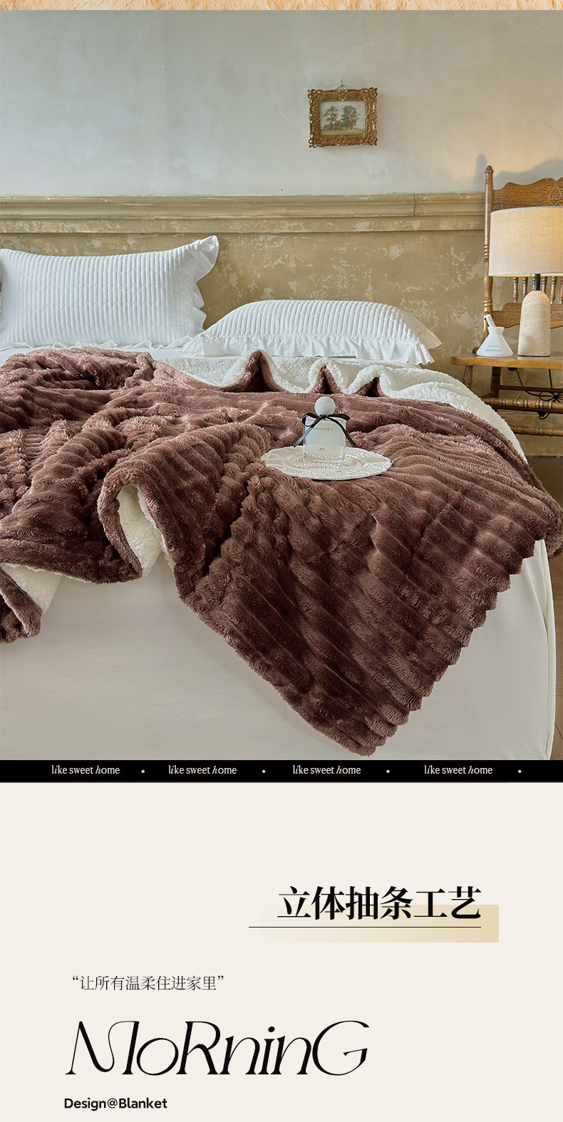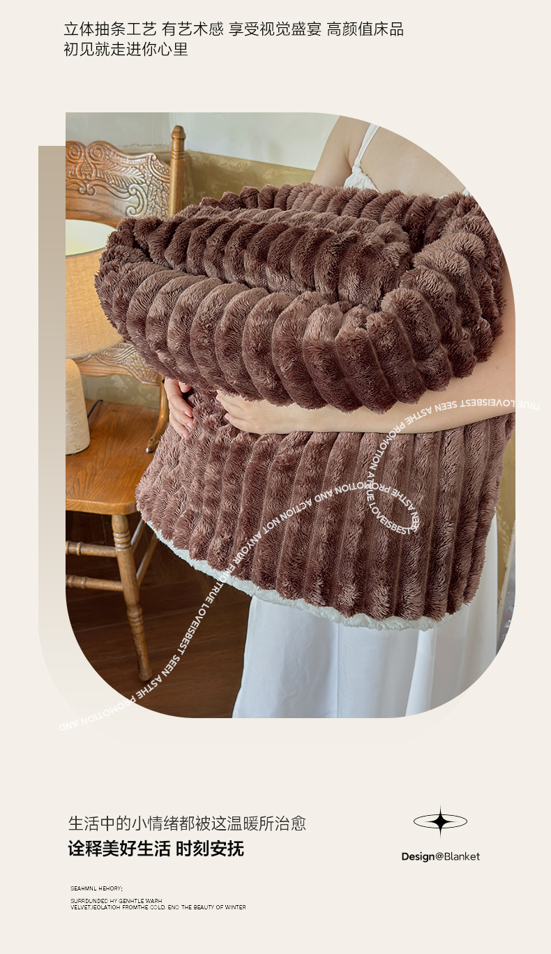 当前位置: 91家纺网 > 商品网购 > 毛毯休闲毯绒毯 > 毛毯 > 艾咪-Amy ntmy 2025新款立体抽条仿兔绒羊羔绒双层毯子 双层毯-深椰棕