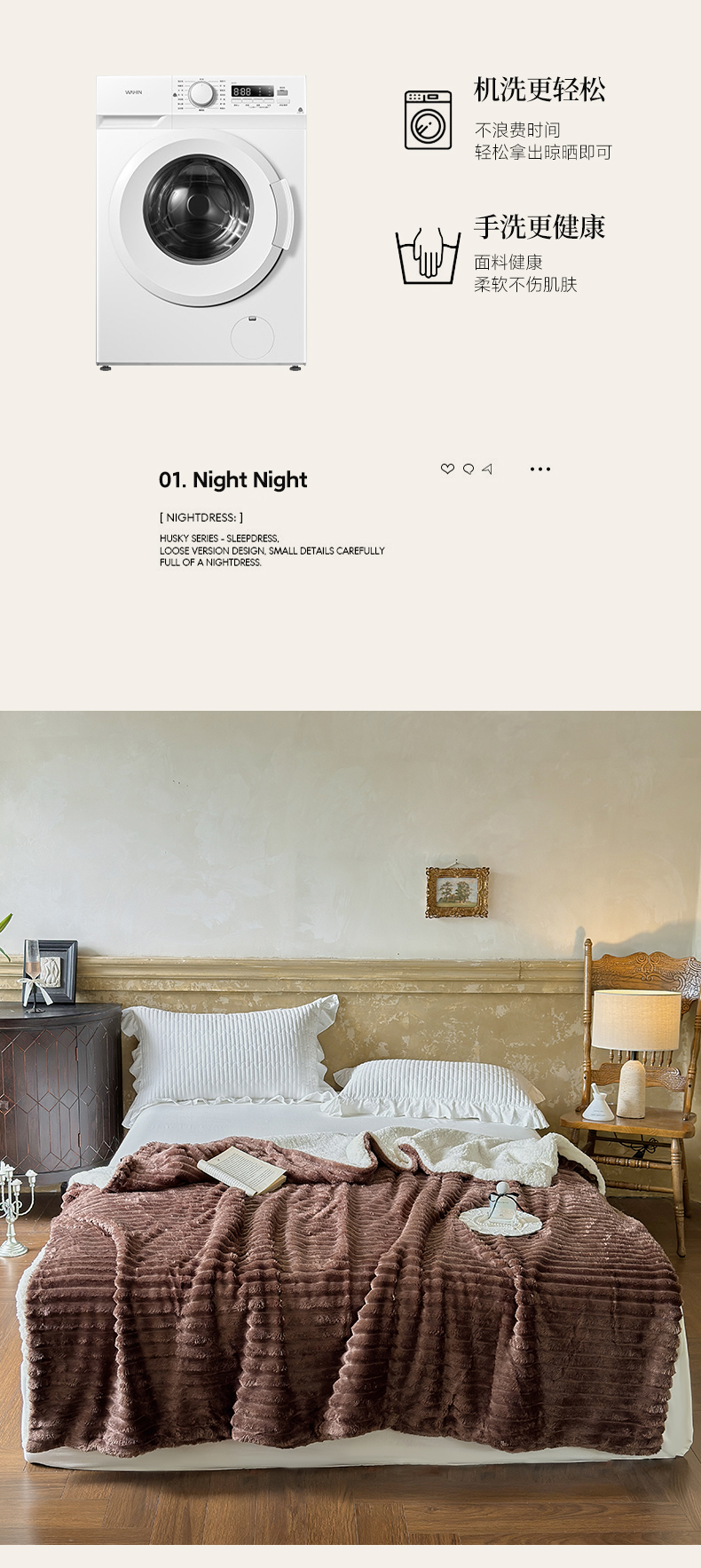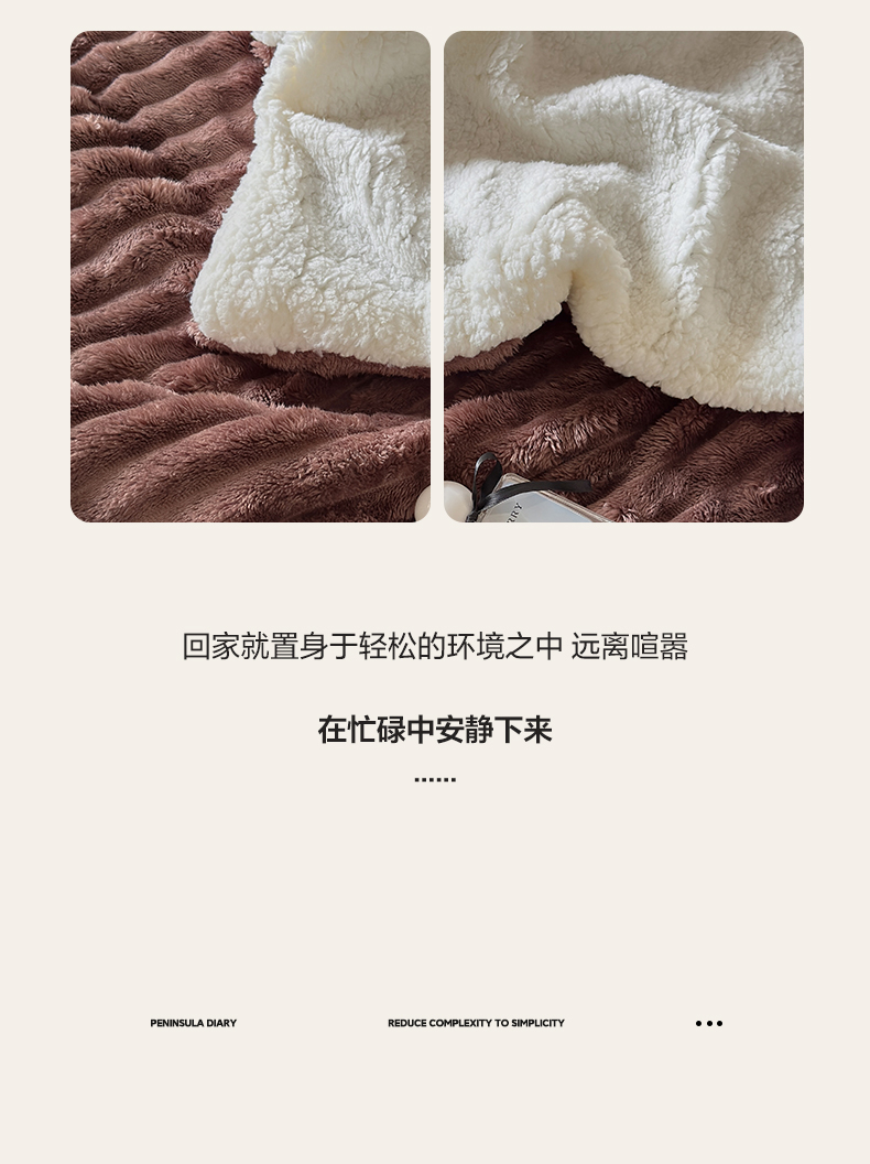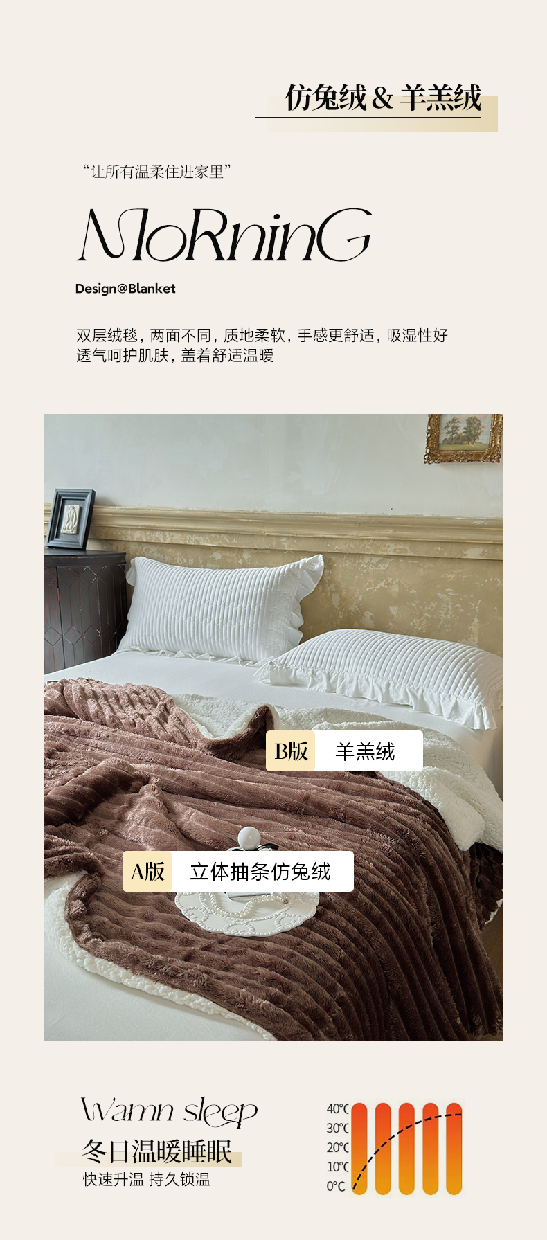 当前位置: 91家纺网 > 商品网购 > 毛毯休闲毯绒毯 > 毛毯 > 艾咪-Amy ntmy 2025新款立体抽条仿兔绒羊羔绒双层毯子 双层毯-深椰棕