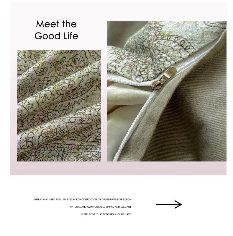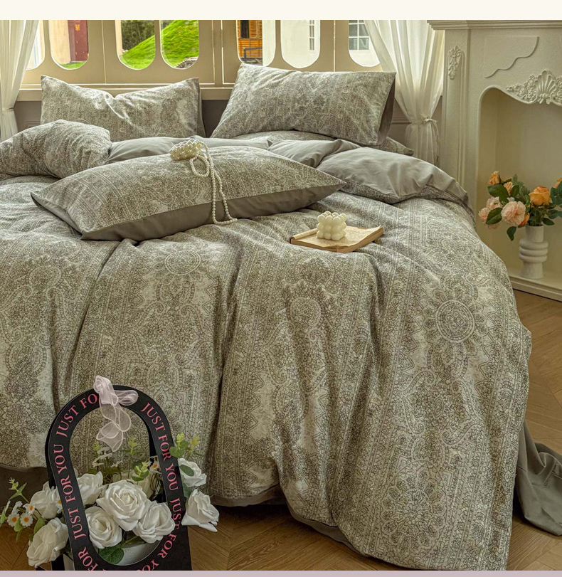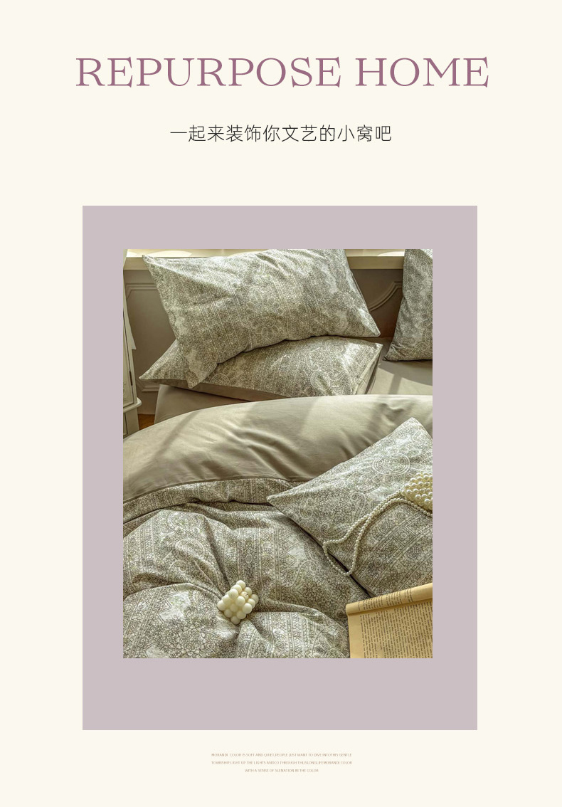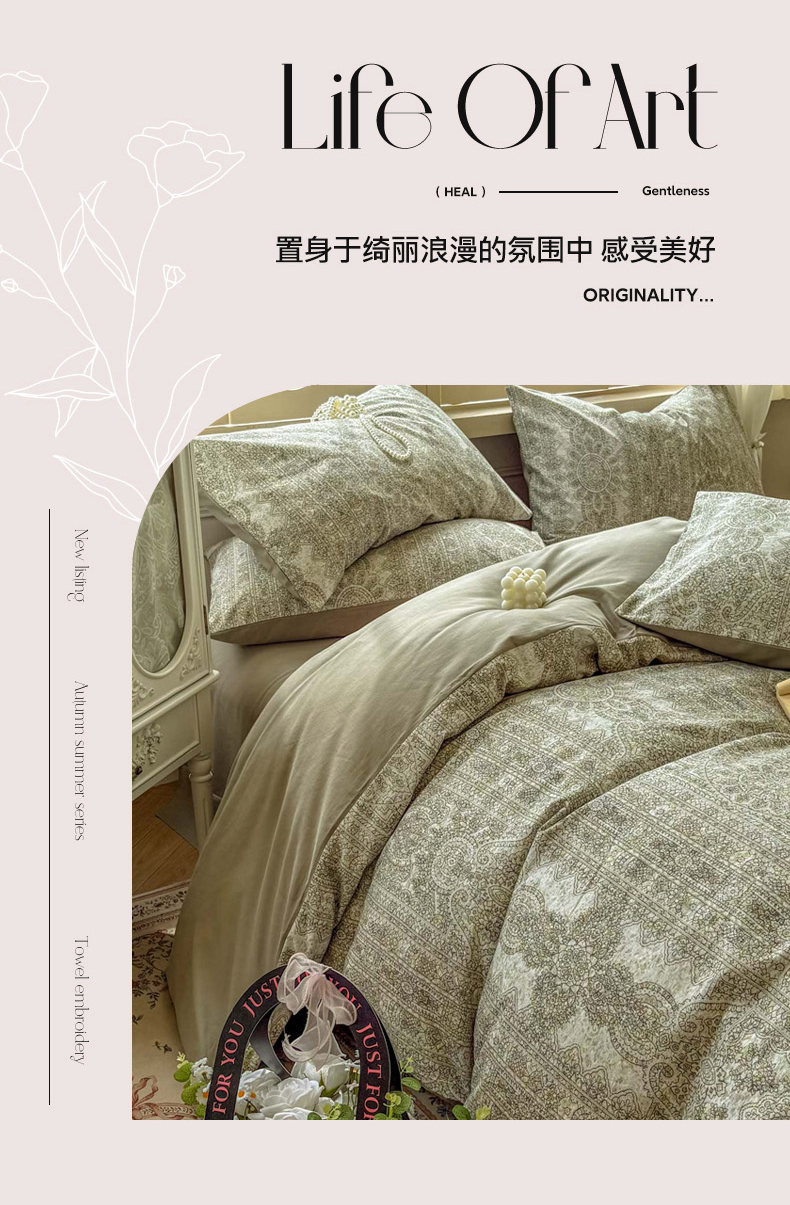 (总)田野 2025新款全棉水洗棉提花锦绣系列四件套,锦绣-灰,锦绣-卡其,锦绣-绿