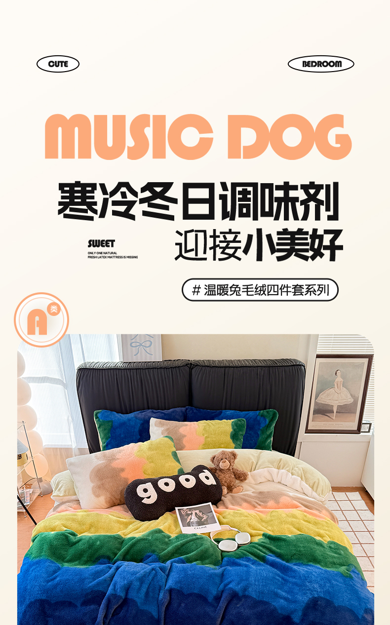(总)HL原创 2025新款兔毛绒四件套,繁花,粉色心情,狗狗线条,焦糖爱心,咖啡,洛可可,麦田,魔法学院,魔方,陌颜,墨蓝,绅士,时尚斑马,晚霞,五彩缤纷,喜乐,小萌物,英伦风,悦动,自由-黑