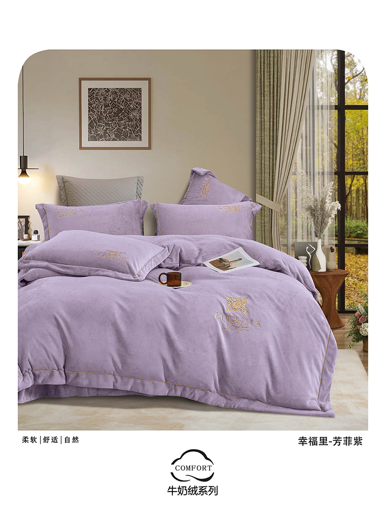 (总)绒博士 2025新款220克牛奶绒刺绣三件套--欧拉系列,欧拉-宾利蓝,欧拉-芳菲紫,欧拉-灰色,欧拉-奶绿,欧拉-樱花粉
