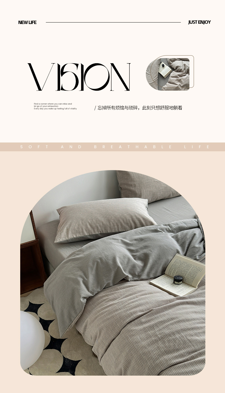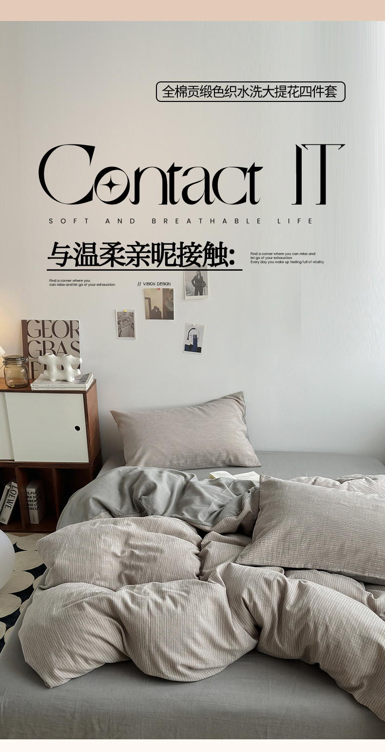 商品名称:(总)水洗的故事(原有乐家) 2025新款秋冬全棉贡缎色织提花条纹款四件套