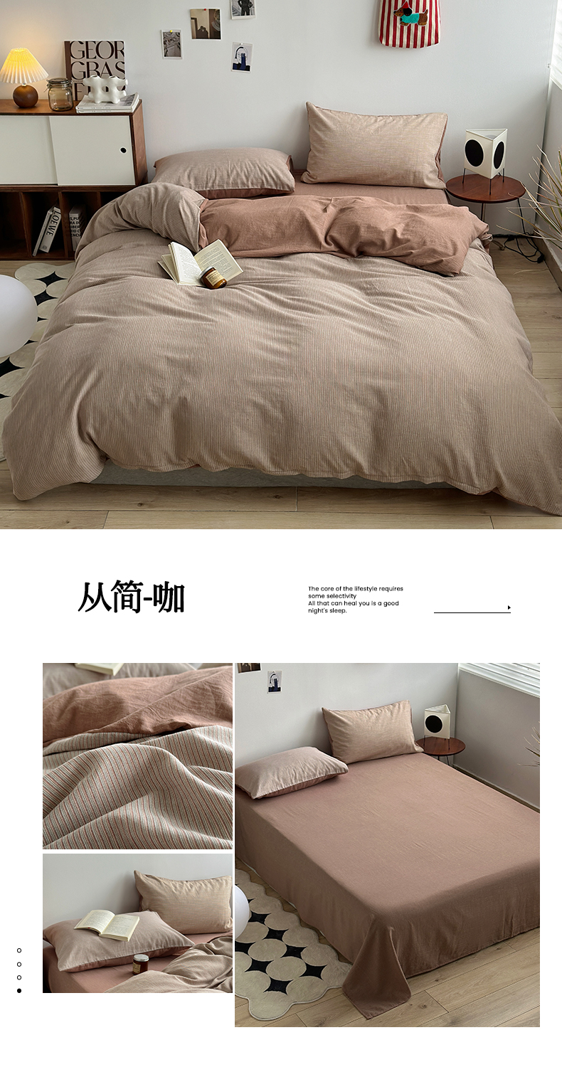 (总)水洗的故事 2025新款全棉色织水洗棉四件套,简序-粉,简序-灰,简序-蓝,简序-米黄,绿韵,樱织,云汐,紫韵粉格