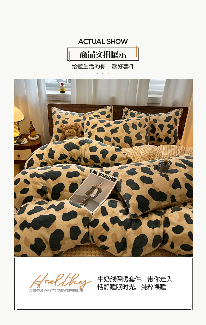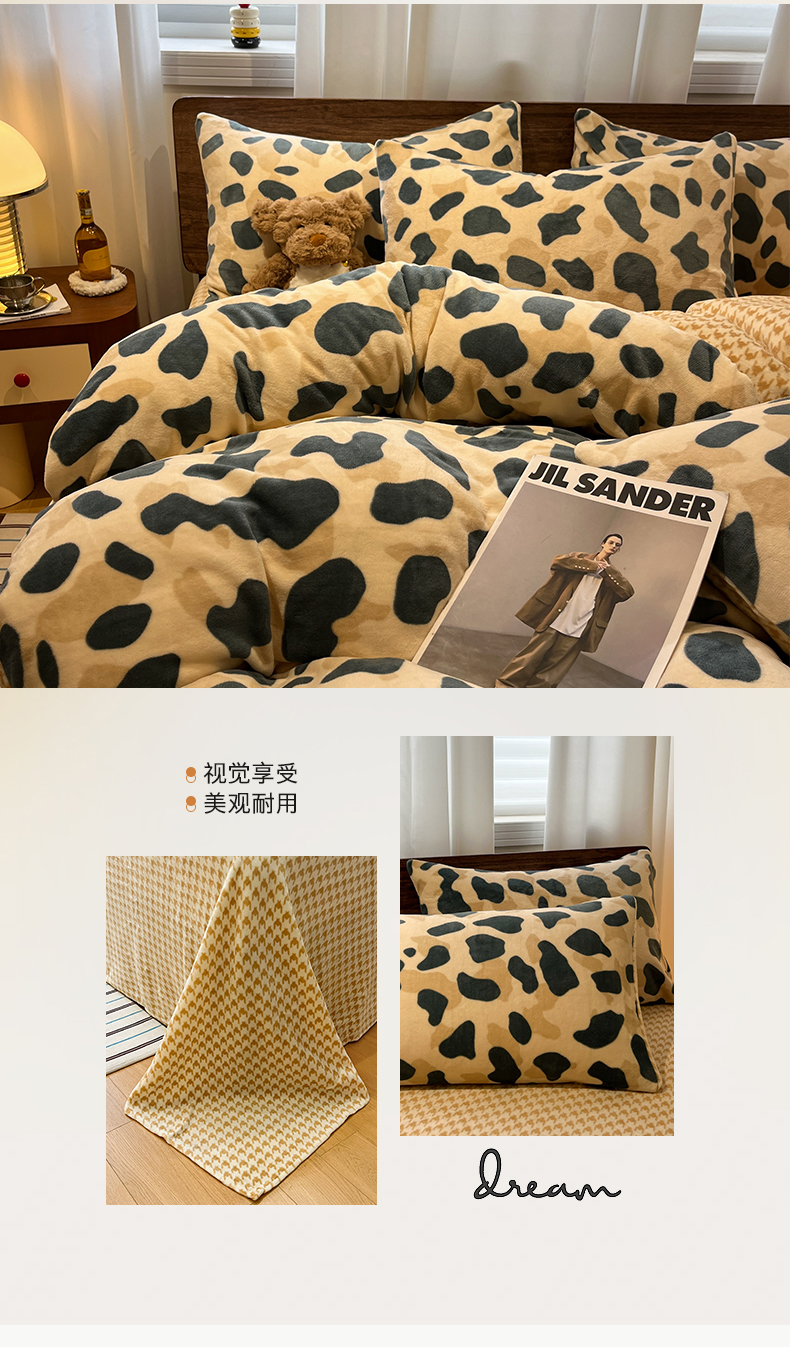 当前位置: 91家纺网 > 商品网购 > 床品套件 > 四件套 > 牛奶绒四件套 > 桃子家居 2025新款A类ins简约奢尚渐变复古格子加厚牛奶绒四件套 绒-豹点点绿咖