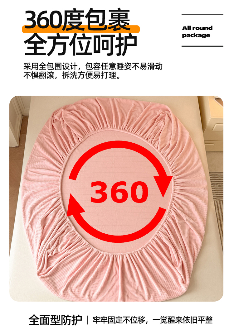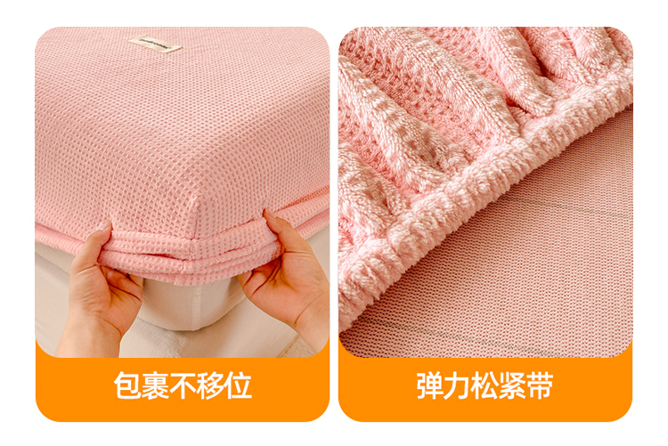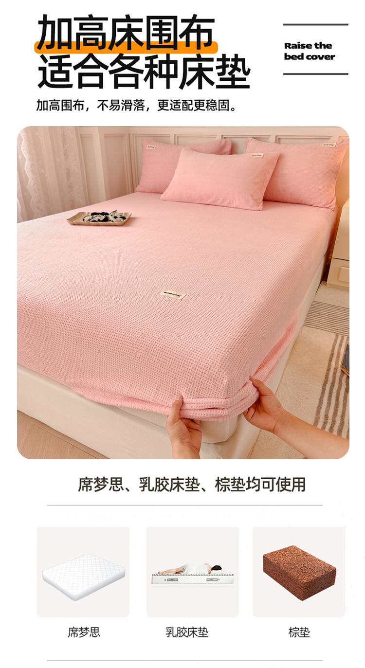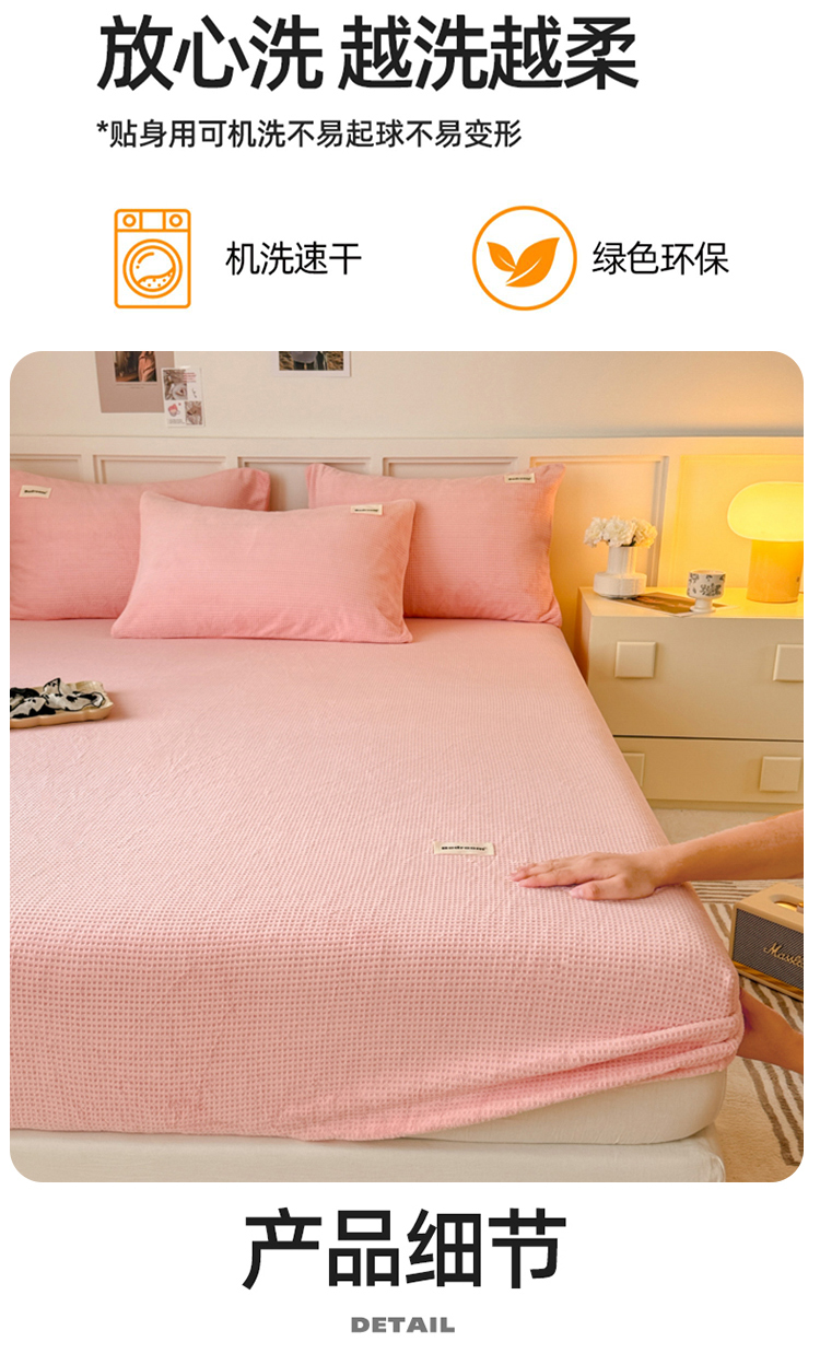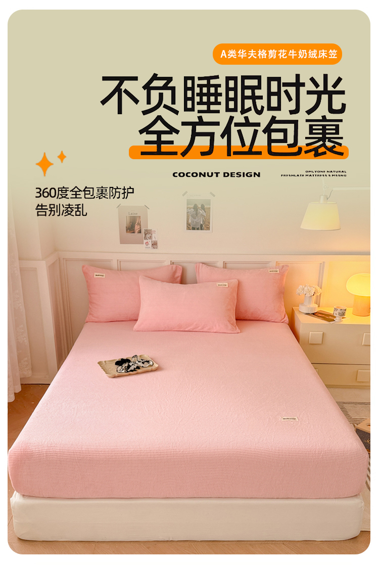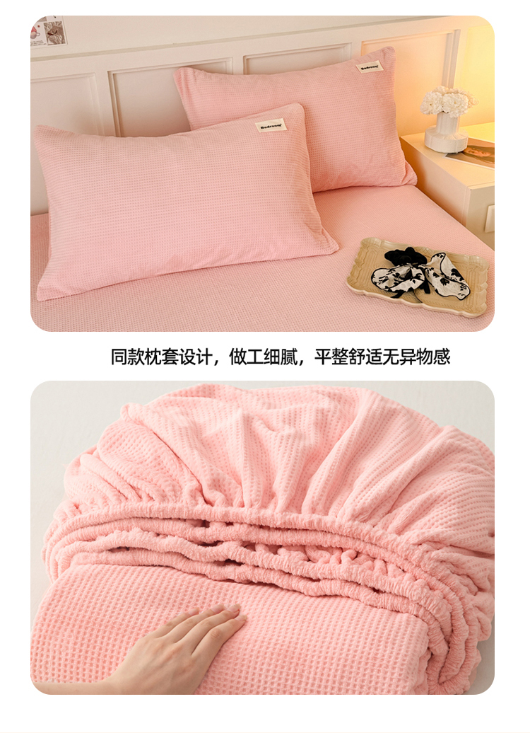 • 91家纺网 家纺一手货源 找家纺 眠博士 2025新款A类华夫格剪花牛奶绒床笠 剪花床笠-粉色