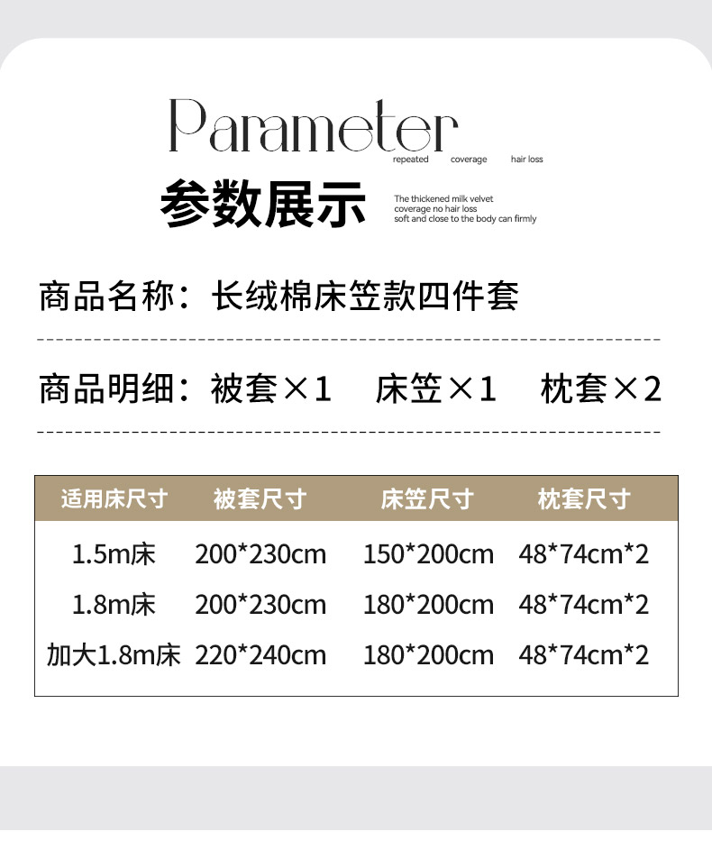 1.5m床笠款四件套 | ¥230.00 |